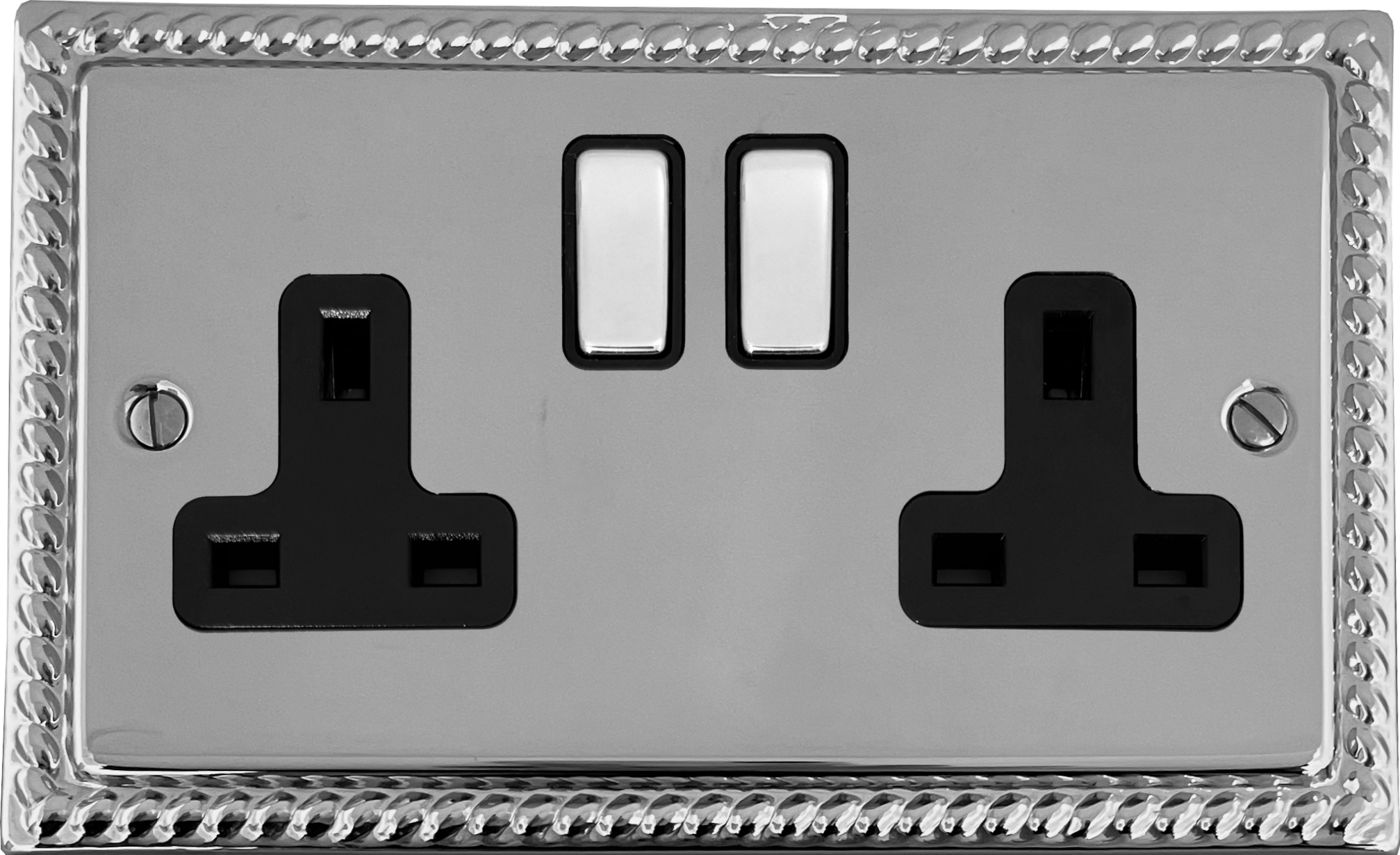 Monarch Polished Chrome Double Socket (Black Insert/Chrome Switches) - G+H MC310