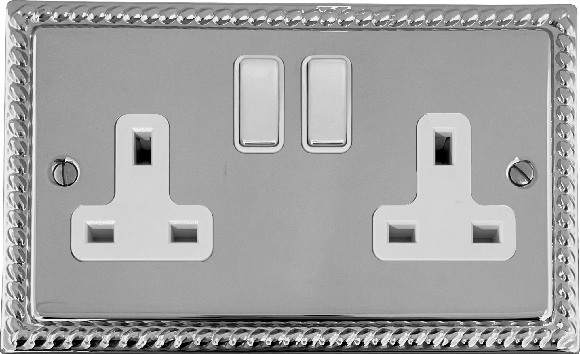 Monarch Polished Chrome Double Socket (White Insert/Chrome Switches) - G+H MC210