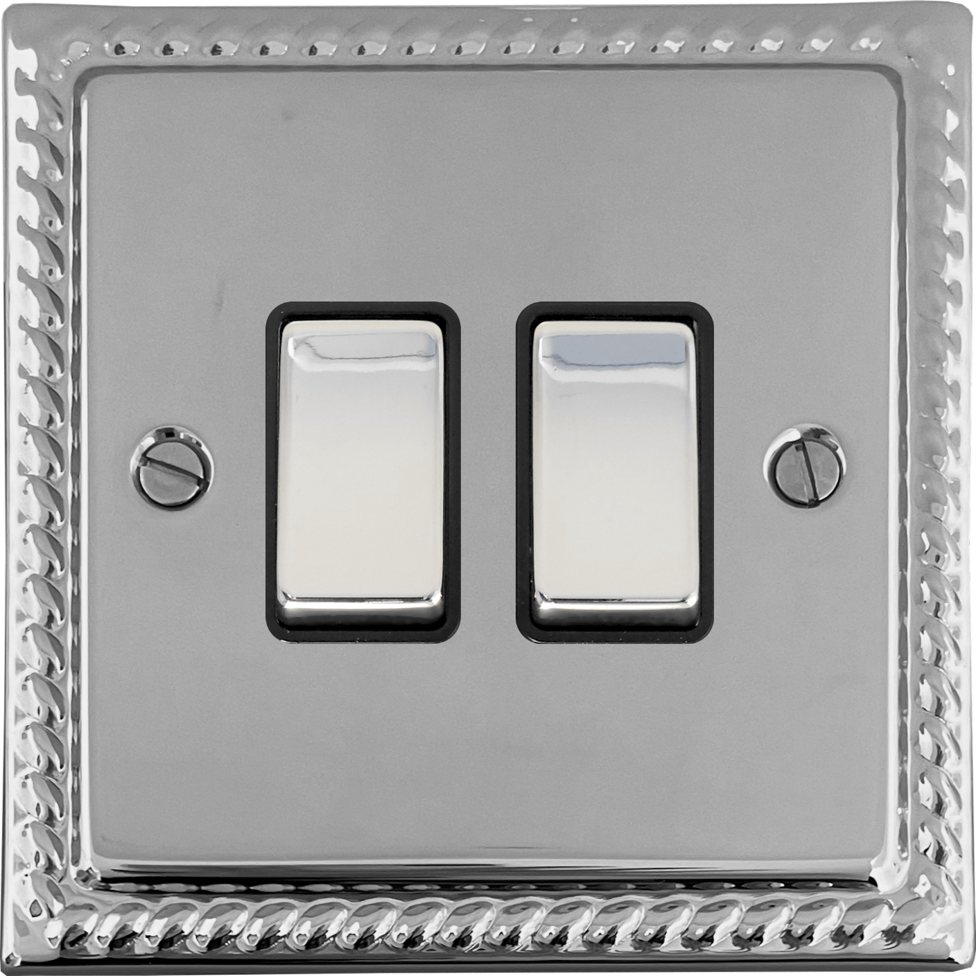 Monarch Polished Chrome Light Switch (2 Gang/Black Insert/Chrome Switches) - G+H MC302