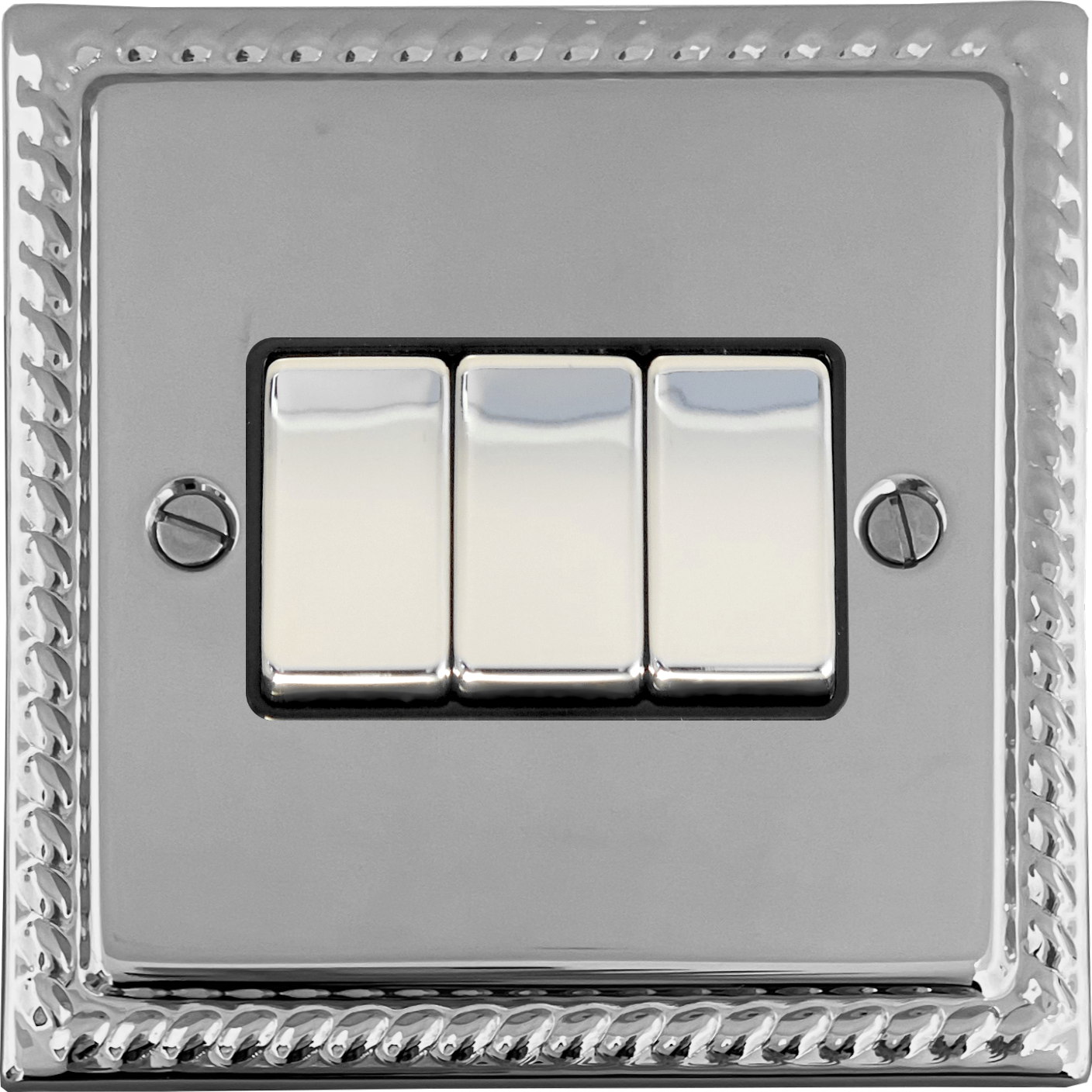 Monarch Polished Chrome Light Switch (3 Gang/Black Insert/Chrome Switches) - G+H MC303