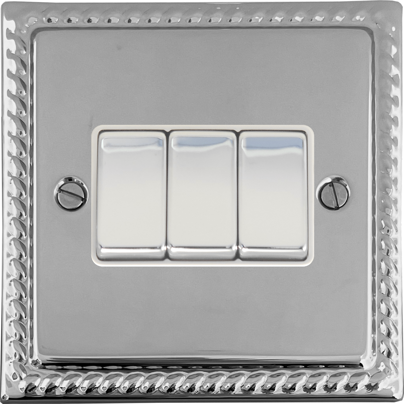 Monarch Polished Chrome Light Switch (3 Gang/White Insert/Chrome Switches) - G+H MC203