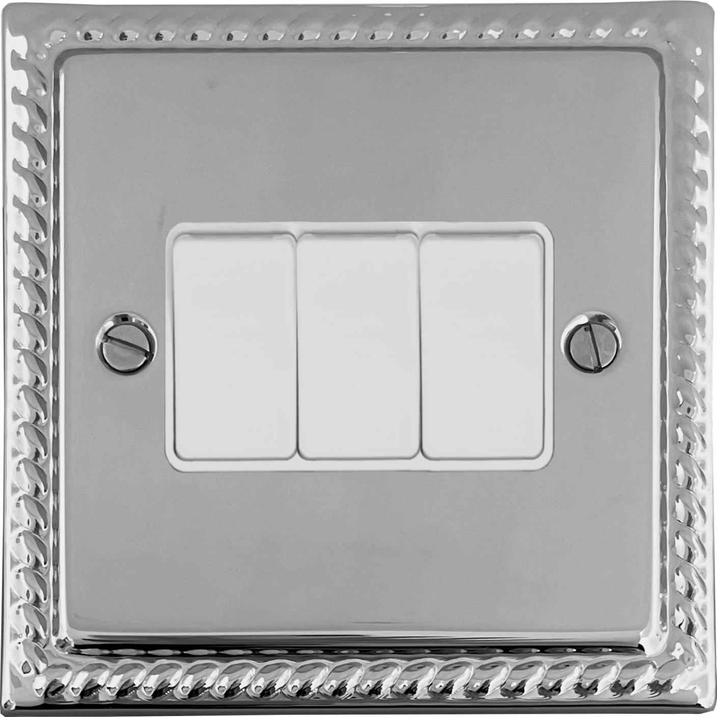 Monarch Polished Chrome Light Switch (3 Gang/White Switches) - G+H MC3W