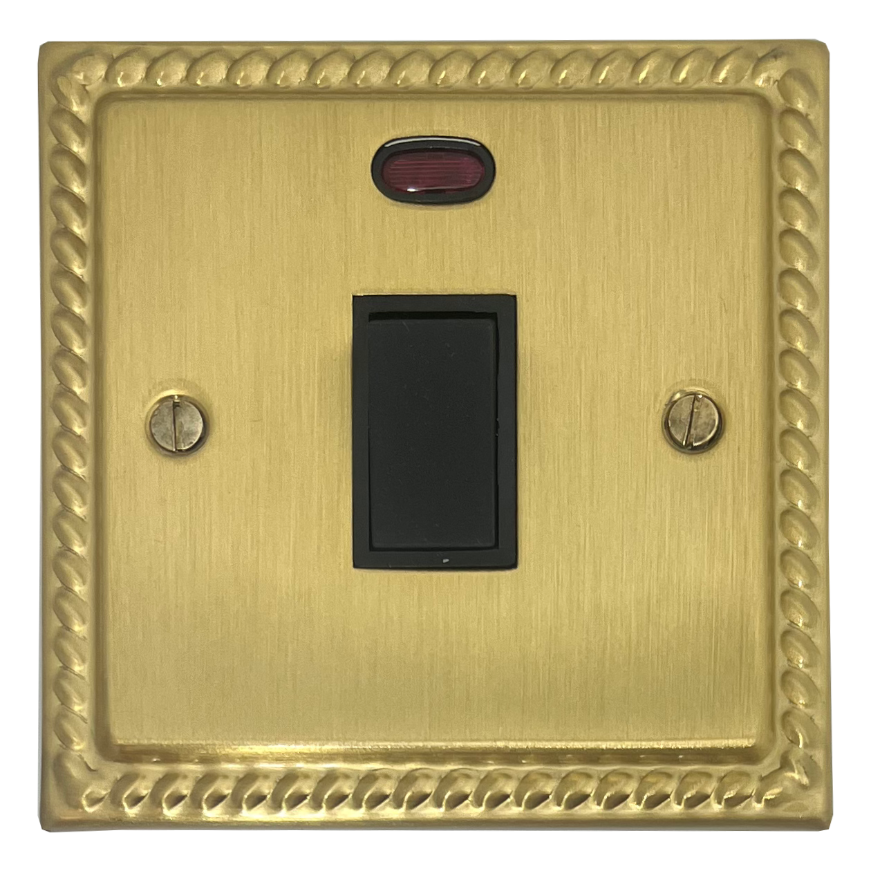 Monarch Satin Brass 20A DP Switch with Neon (Black Switch) - G+H MSB26B