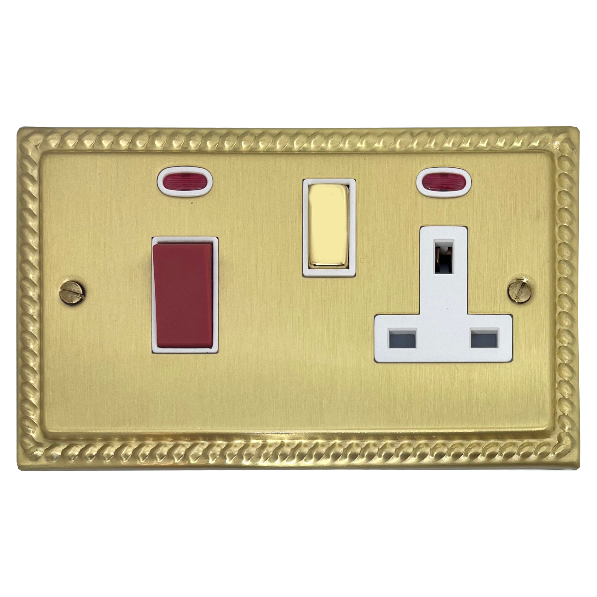 Monarch Satin Brass Cooker Switch with Socket (Brass Switch/White Insert) - G+H MSB229