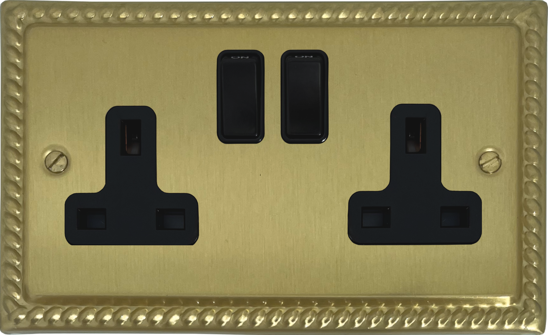 Monarch Satin Brass Double Socket (Black Switches) - G+H MSB10B