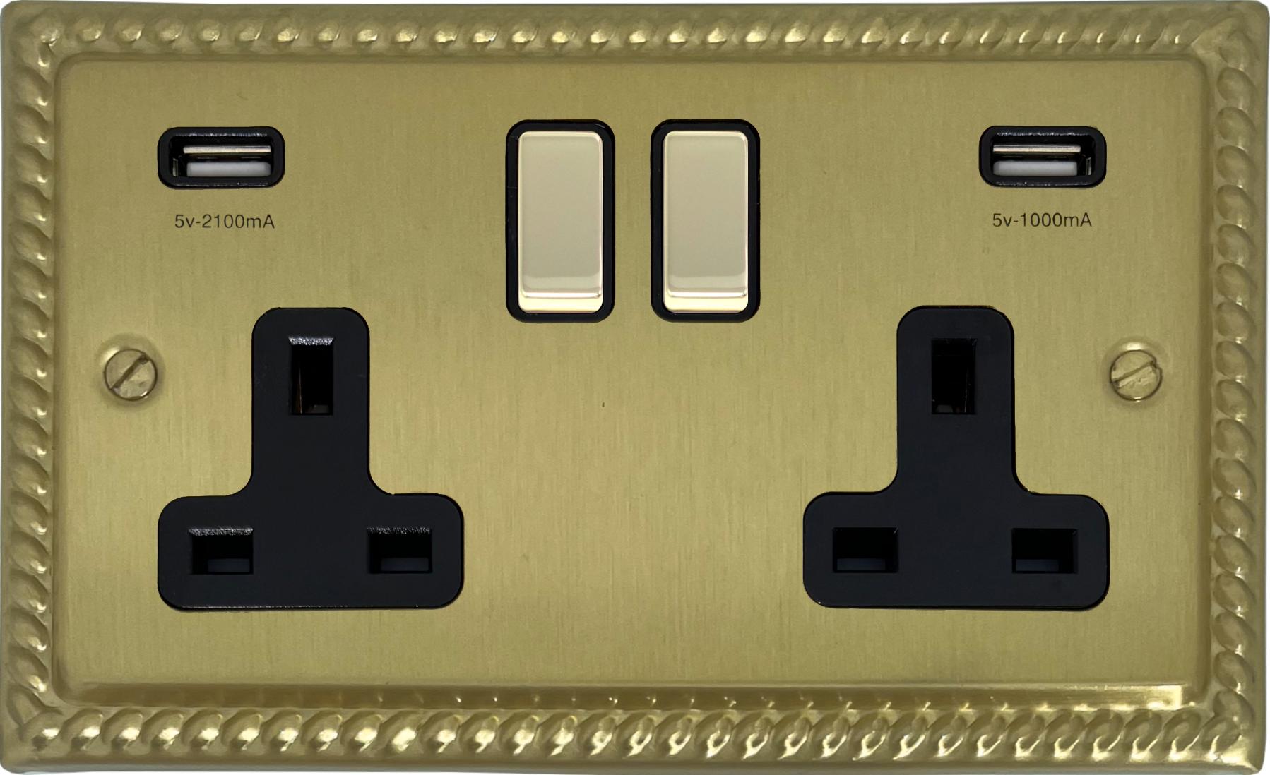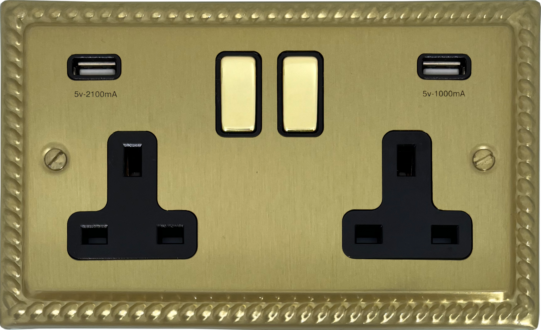 Monarch Satin Brass Double Socket with USB (Brass Switch) - G+H MSB3910
