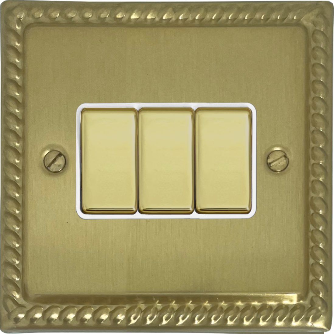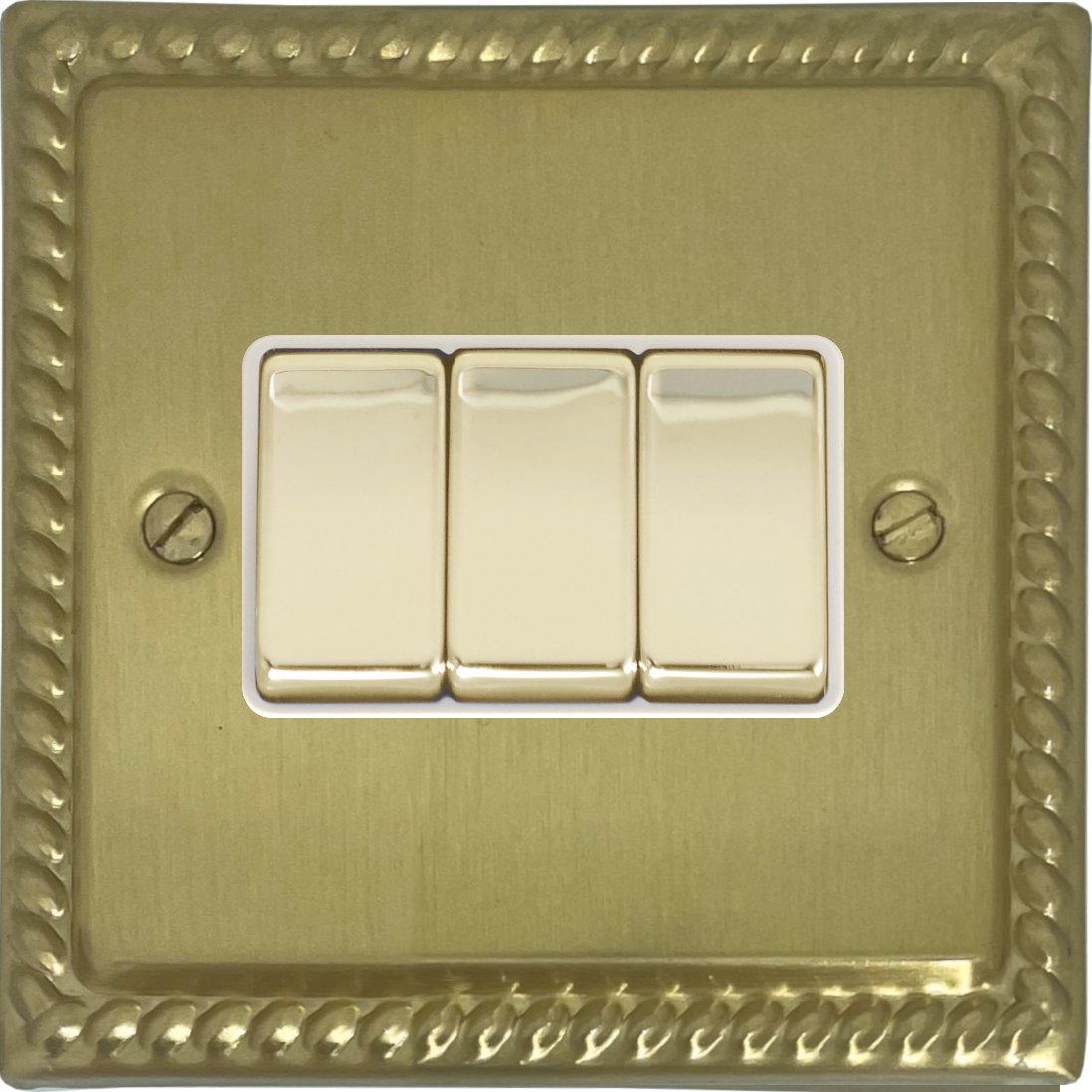 Monarch Satin Brass Light Switch (3 Gang/Brass Switches/White Inserts) - G+H MSB203