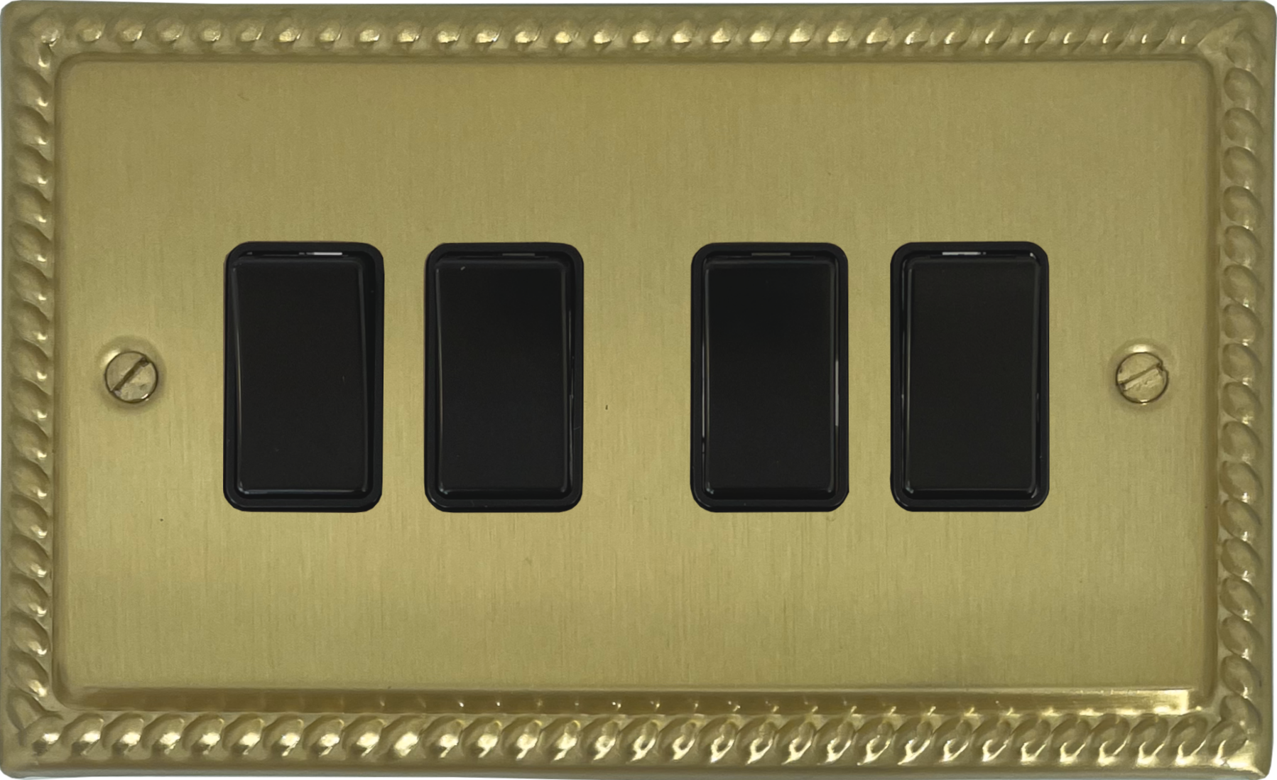 Monarch Satin Brass Light Switch (4 Gang/Black Switches) - G+H MSB4B