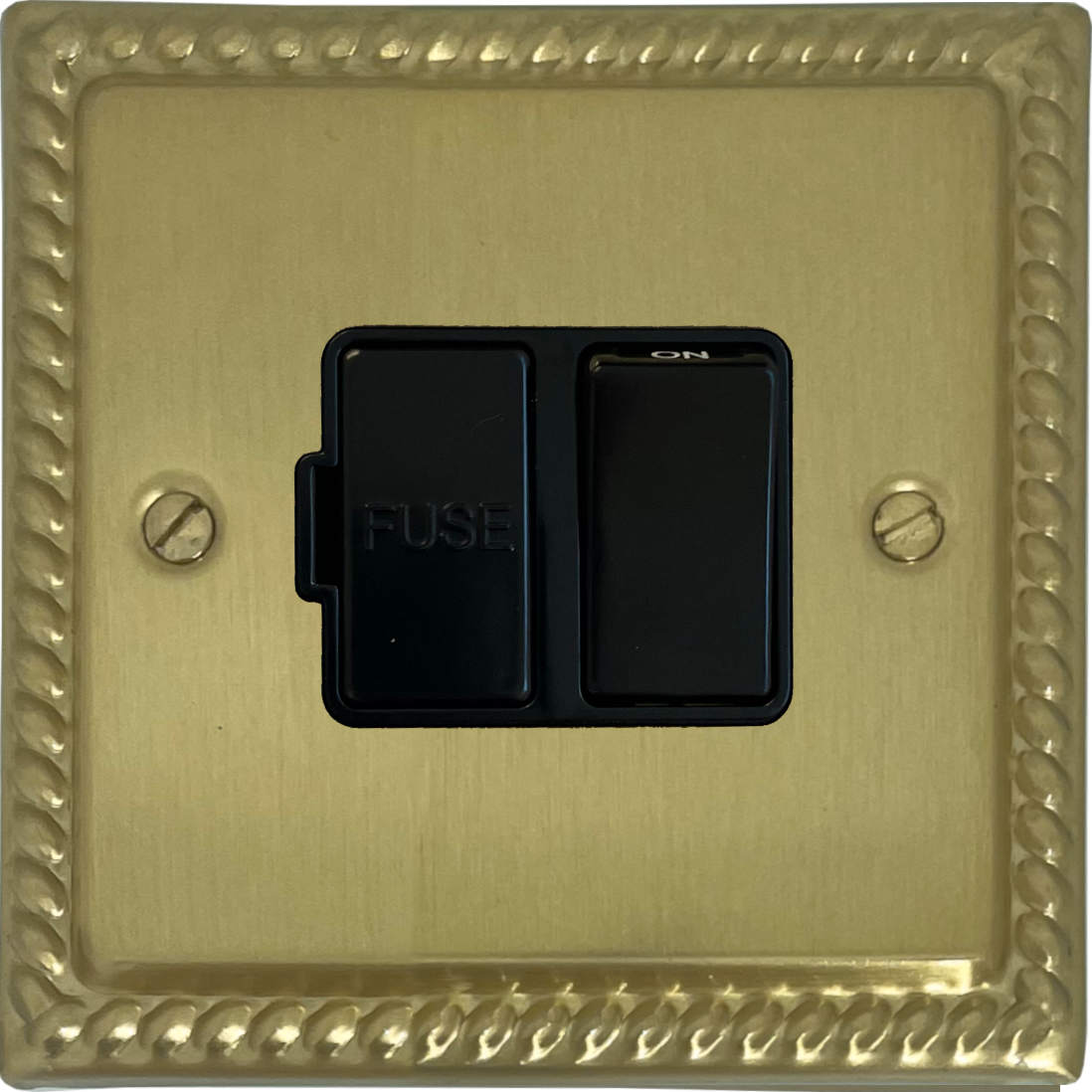 Monarch Satin Brass Switched Fused Spur (Black Switch) - G+H MSB57B