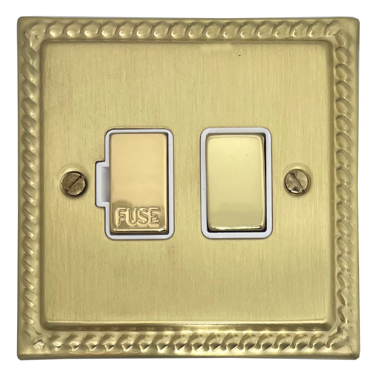 Monarch Satin Brass Switched Fused Spur (Brass Switch/White Insert) - G+H MSB257