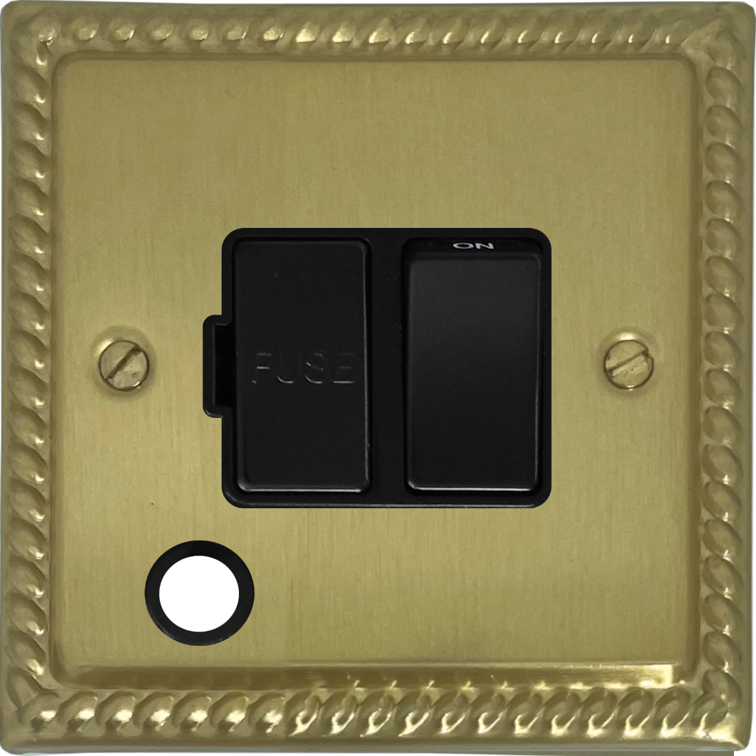 Monarch Satin Brass Switched Fused Spur with Flex Outlet (Black Switch) - G+H MSB56B