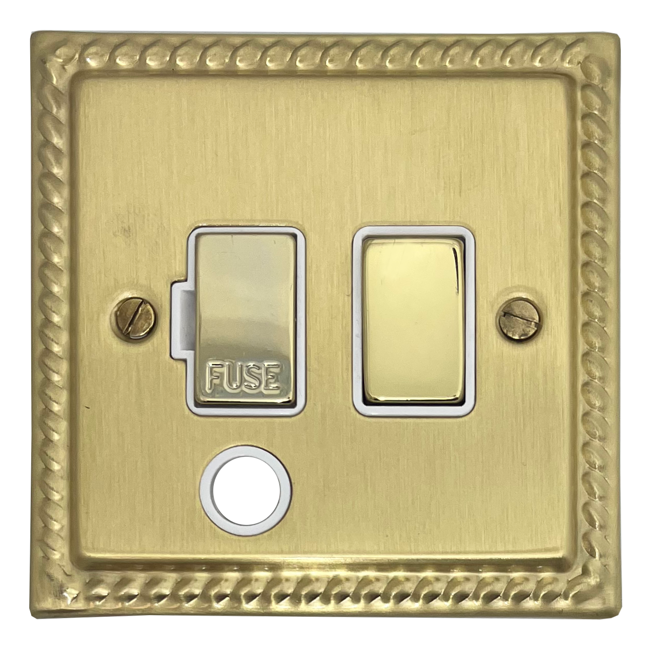 Monarch Satin Brass Switched Fused Spur with Flex Outlet (Brass Switch/White Insert) - G+H MSB256