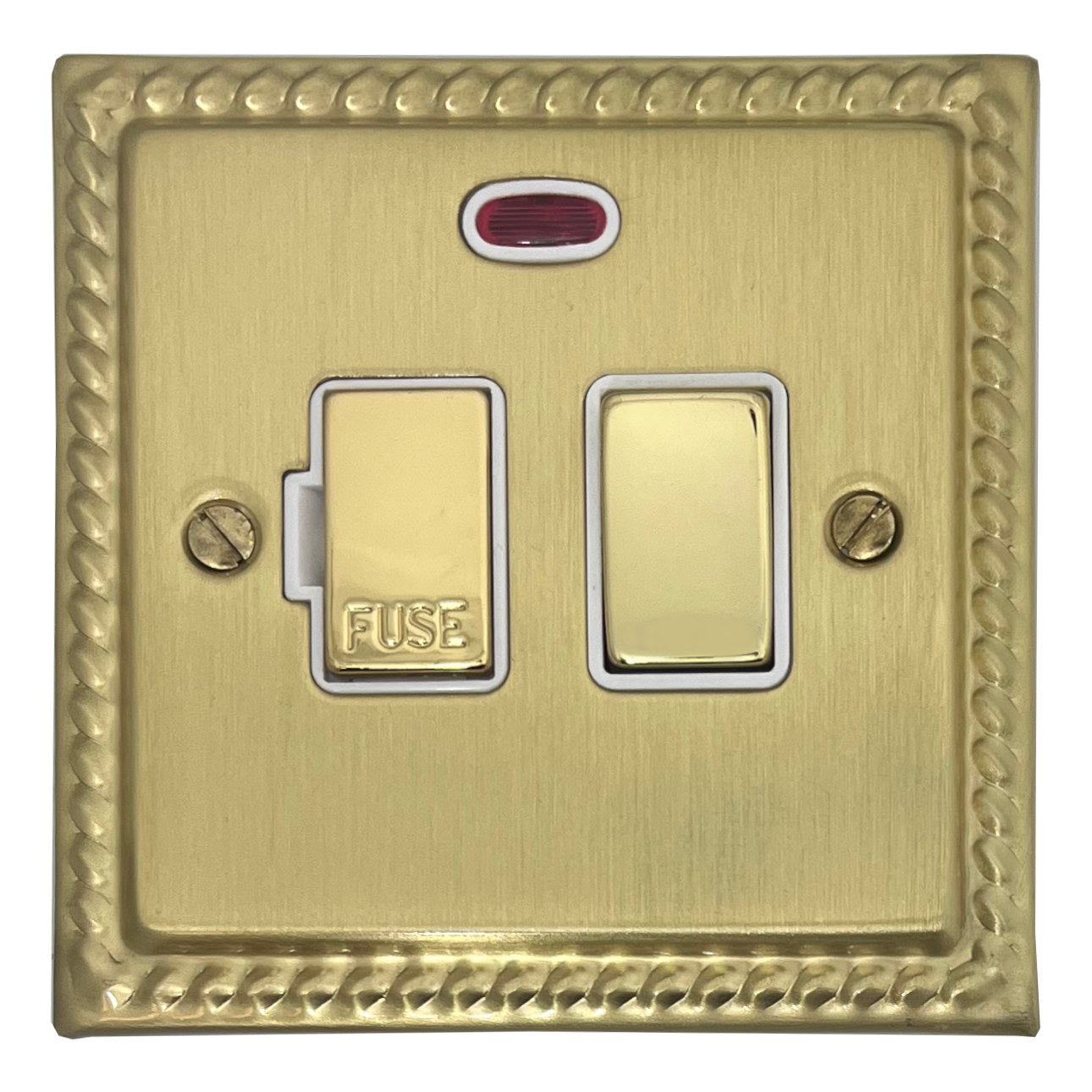 Monarch Satin Brass Switched Fused Spur with Neon (Brass Switch/White Insert) - G+H MSB227