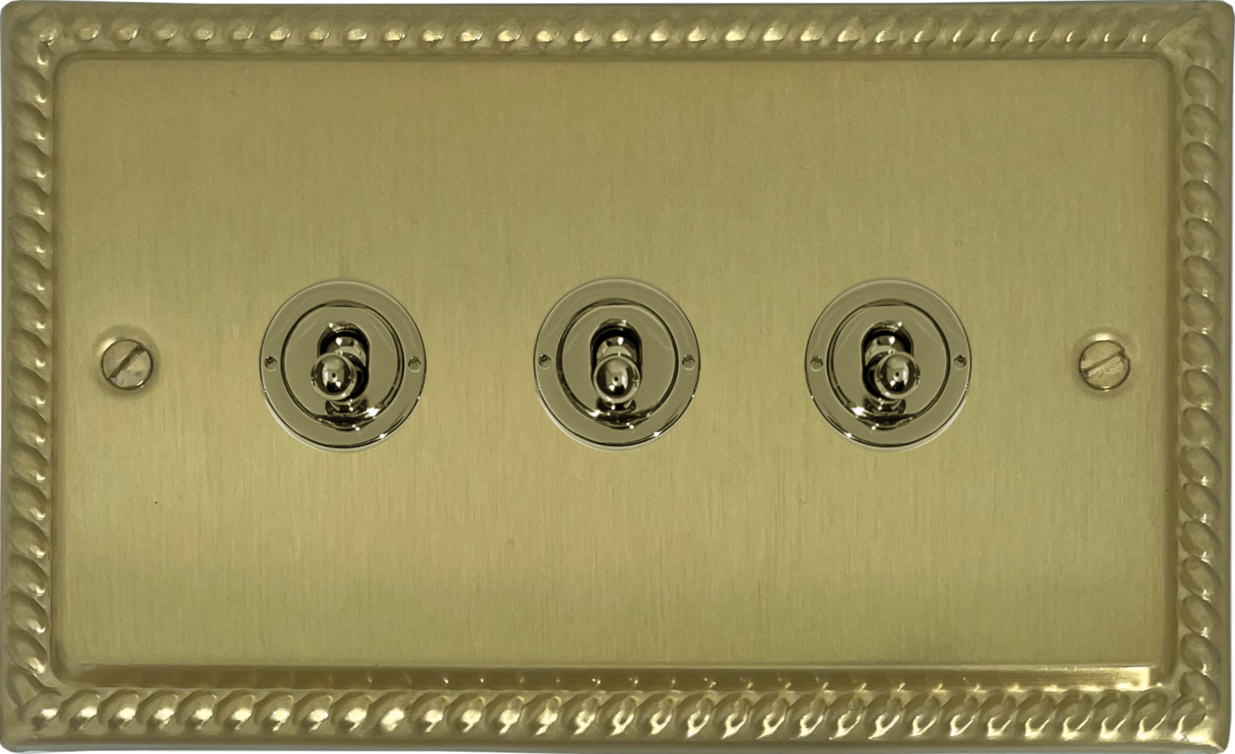 Monarch Satin Brass Toggle Switch (3 Gang) - G+H MSB383