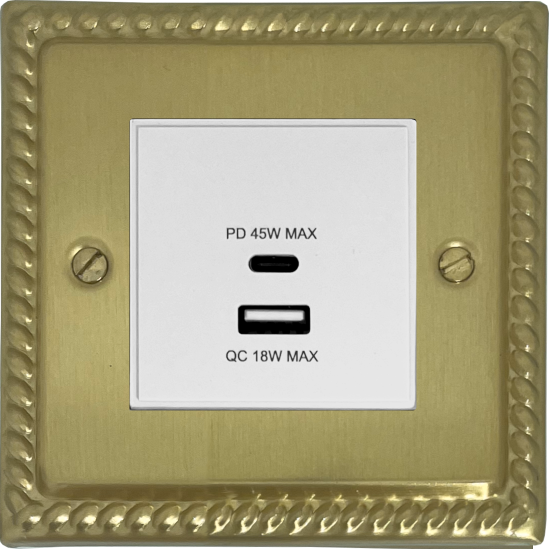 Monarch Satin Brass USB Charger (Dual USB A + C Quick Charge) (1 Gang/White Insert) - G+H MSB43W