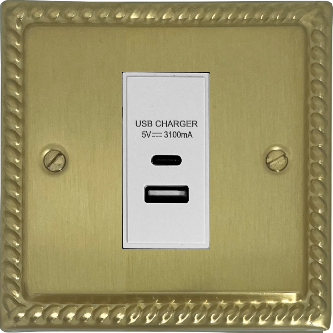 Monarch Satin Brass USB Charger (USB-A and USB-C) (1 Gang/White Insert) - G+H MSB41W