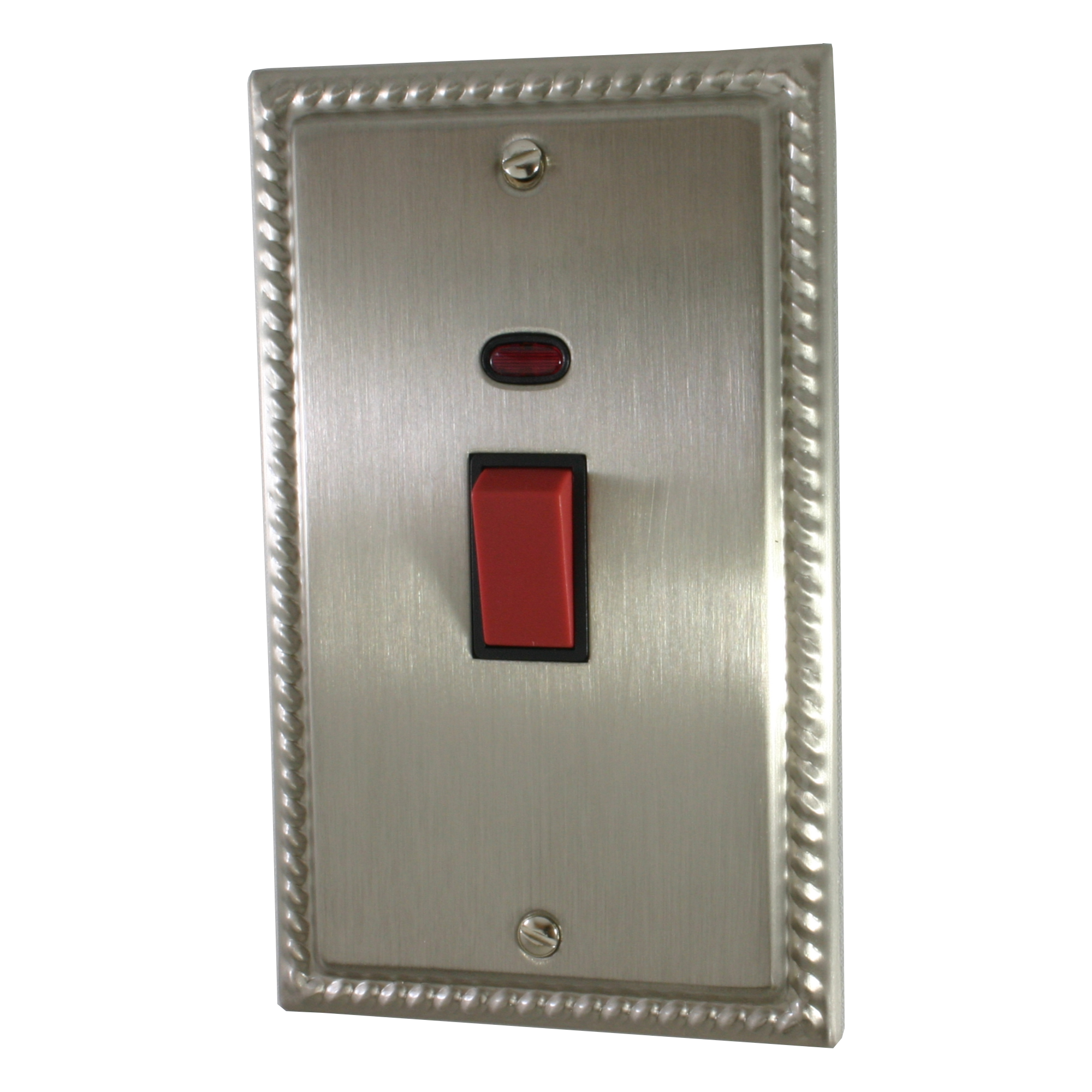 Monarch Satin Nickel 45A DP Switch with Neon (Black Insert/Red Switch/Vertical Plate)