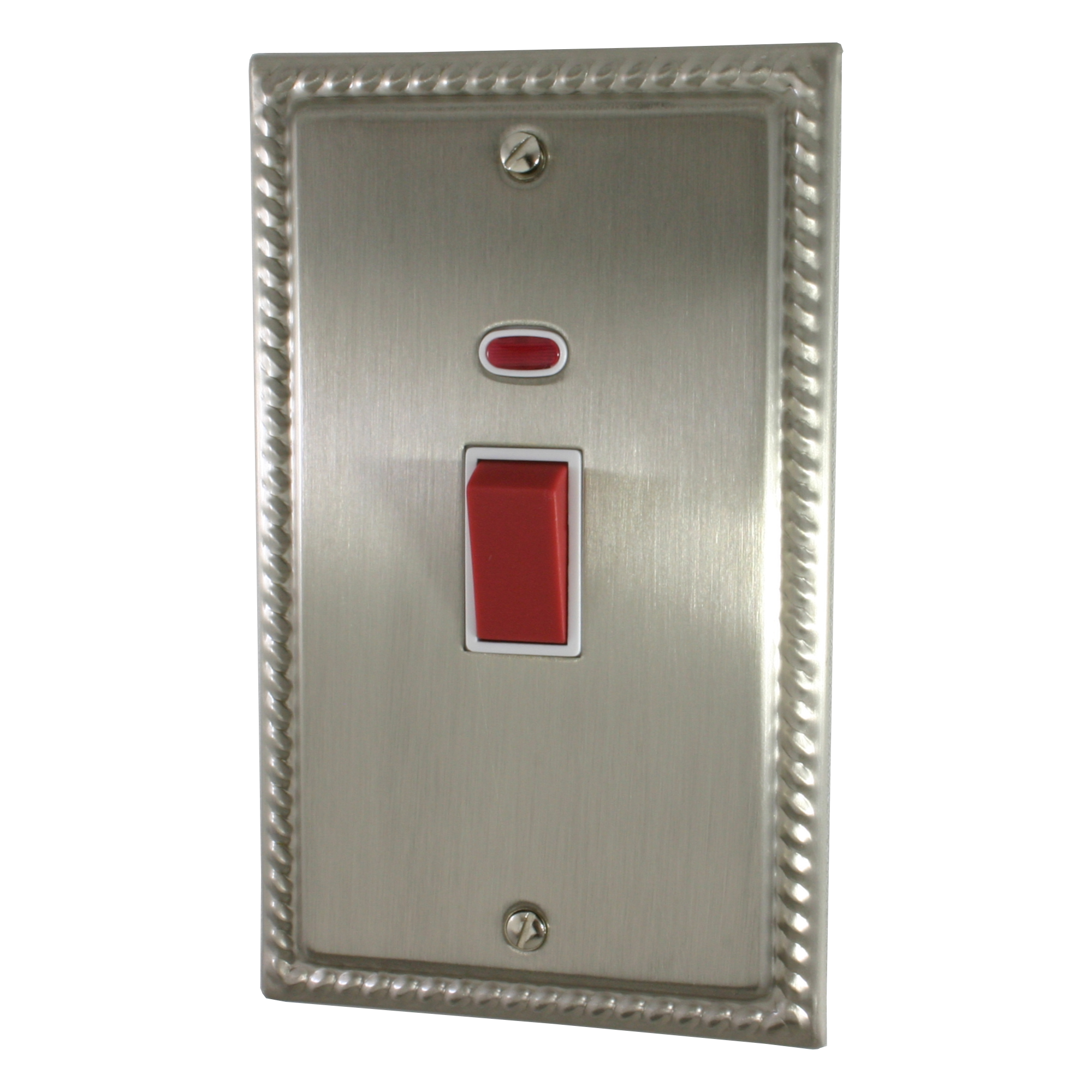 Monarch Satin Nickel 45A DP Switch with Neon (White Insert/Red Switch/Vertical Plate) - G+H MSN28W