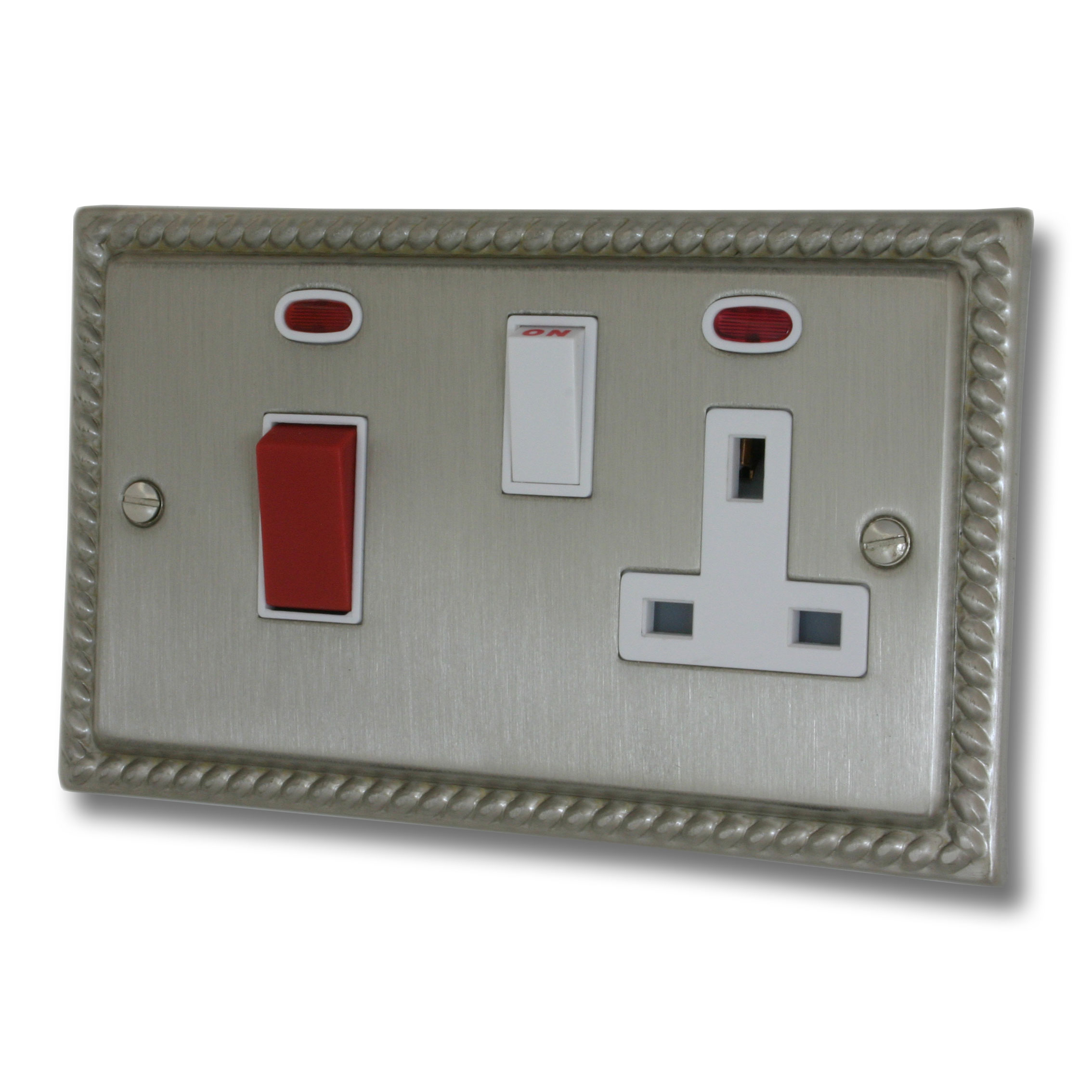 Monarch Satin Nickel Cooker Switch with Socket (White Insert/White Switch) - G+H MSN29W