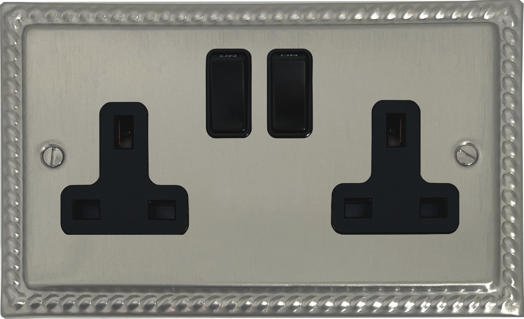 Monarch Satin Nickel Double Socket (Black Switch) - G+H MSN10B