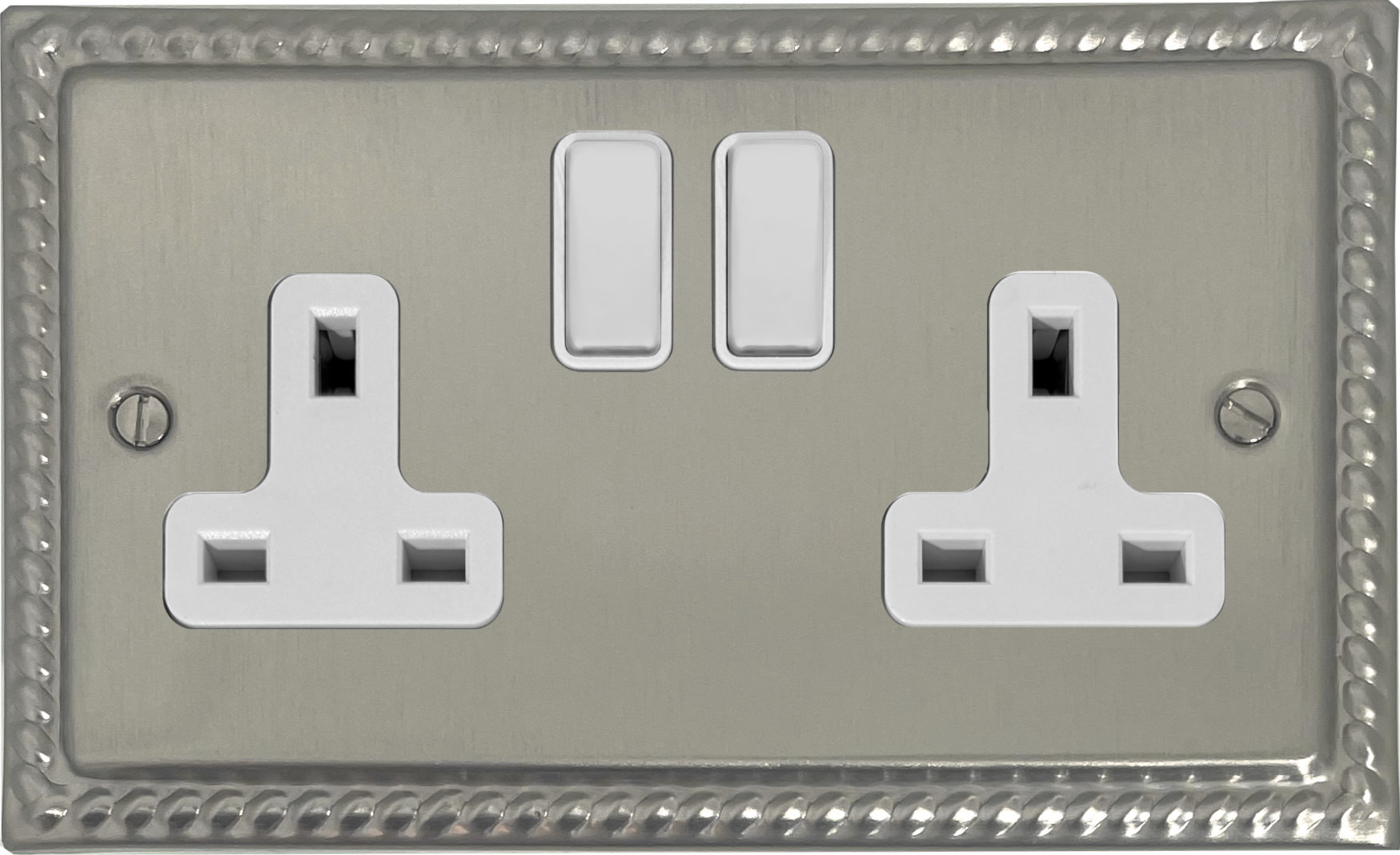 Monarch Satin Nickel Double Socket (White Switch) - G+H MSN10W