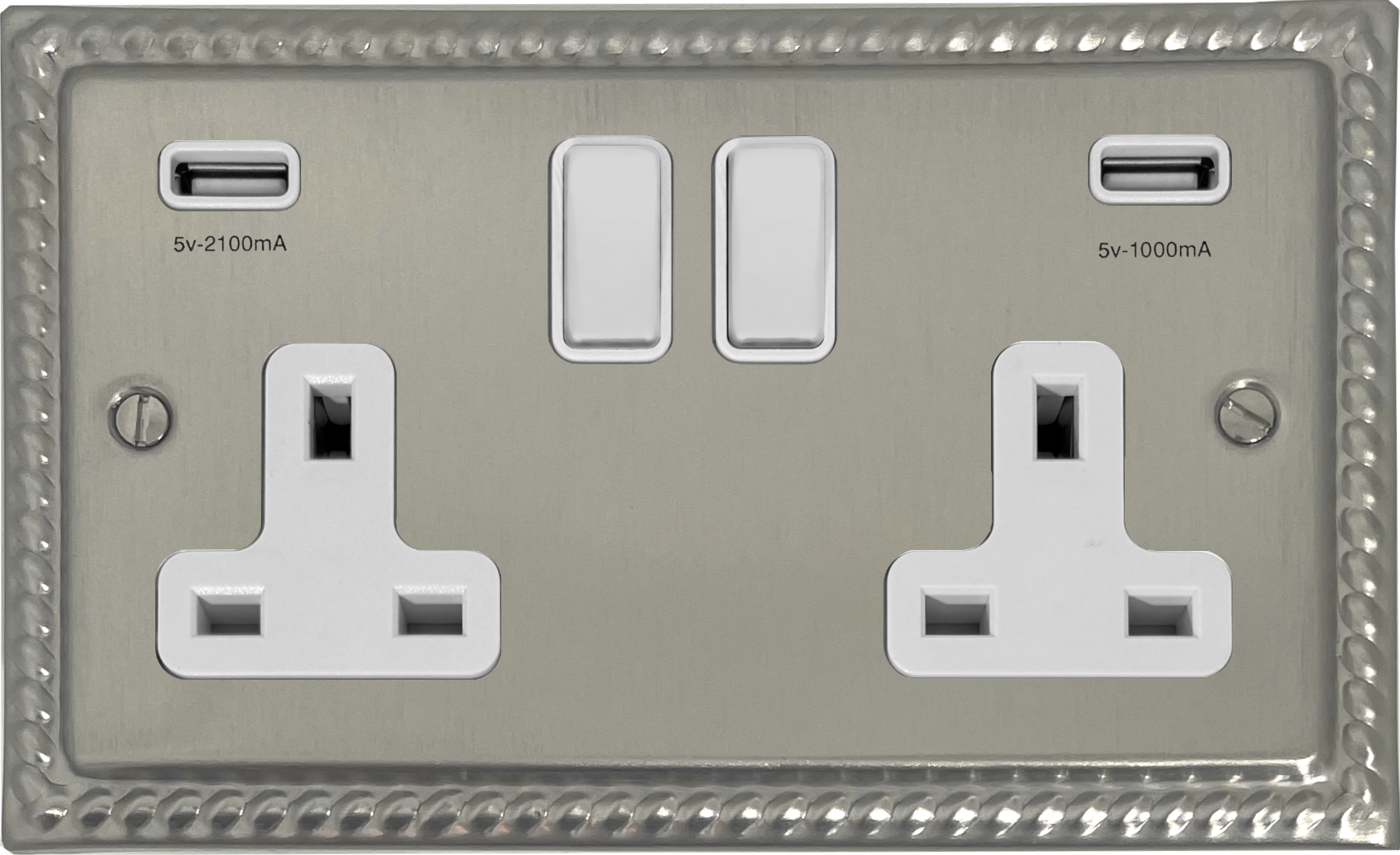 Monarch Satin Nickel Double Socket with USB (White Switch) - G+H MSN910W