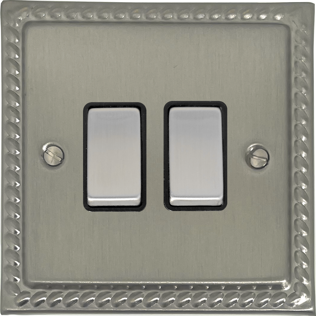 Monarch Satin Nickel Light Switch (2 Gang/Black Insert/Matching Switch) - G+H MSN302