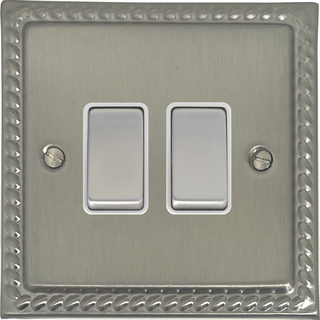 Monarch Satin Nickel Light Switch (2 Gang/White Insert/Matching Switch) - G+H MSN202