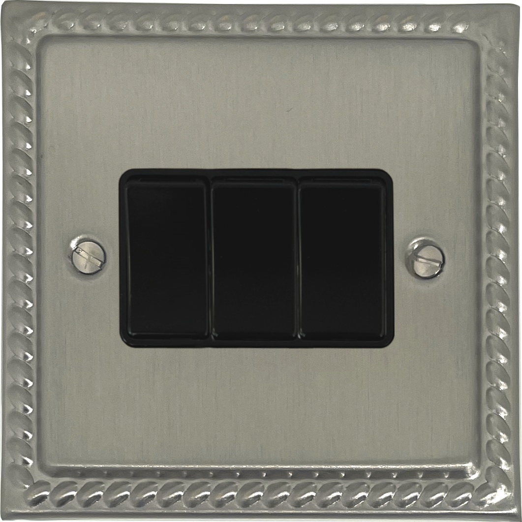 Monarch Satin Nickel Light Switch (3 Gang/Black Switch) - G+H MSN3B