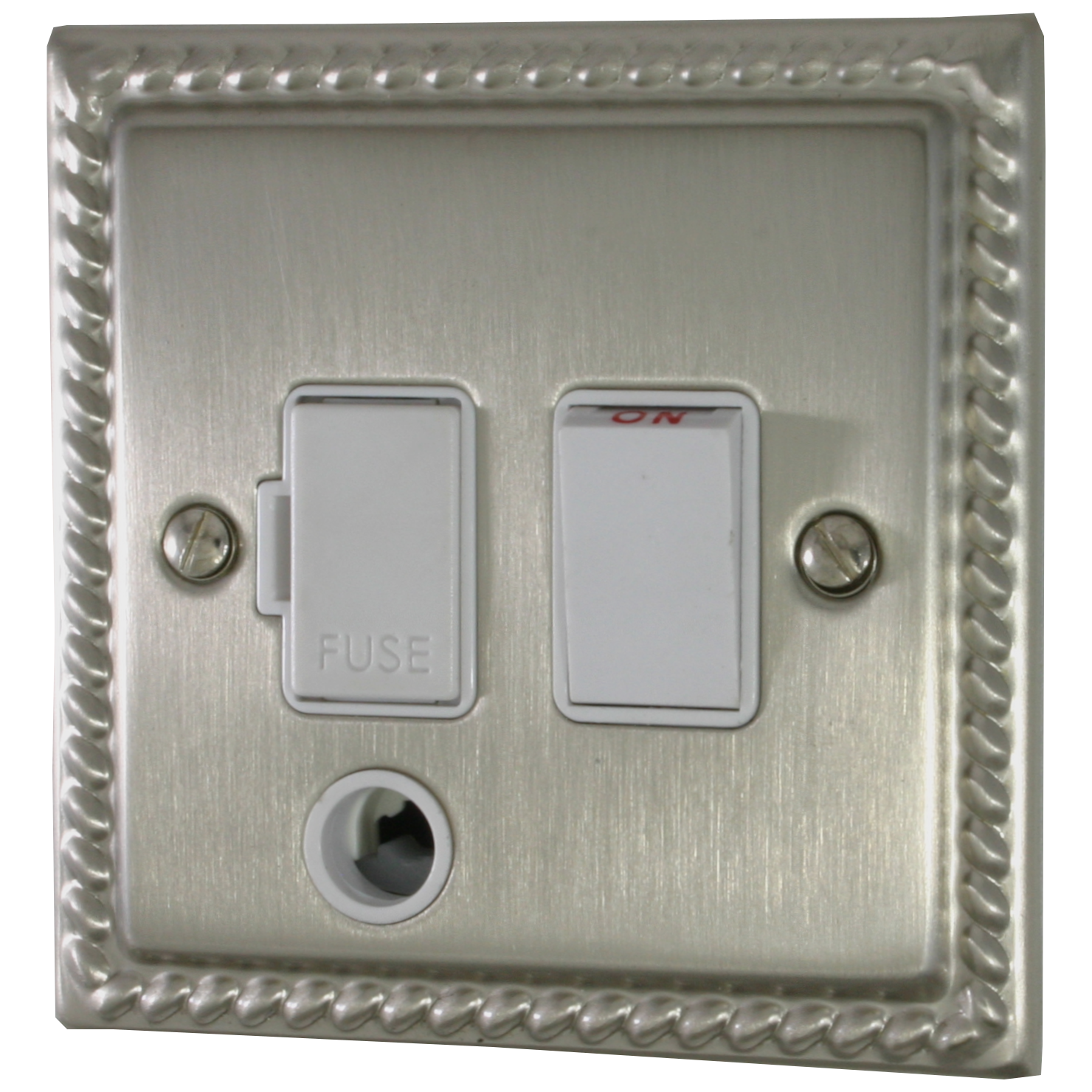 Monarch Satin Nickel Switched Fused Spur with Flex Outlet (White Switch)