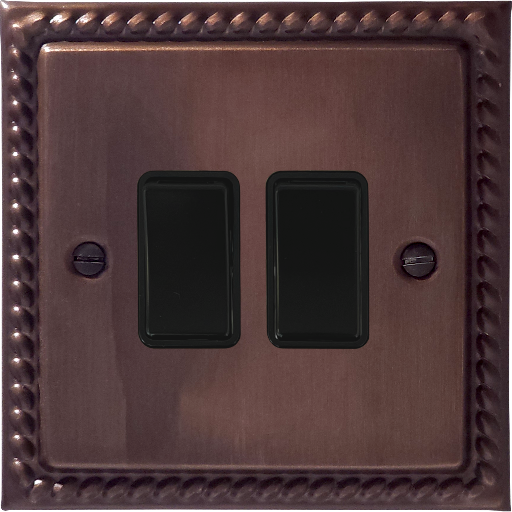 Monarch Tarnished Copper Light Switch (2 Gang/Black Switch)