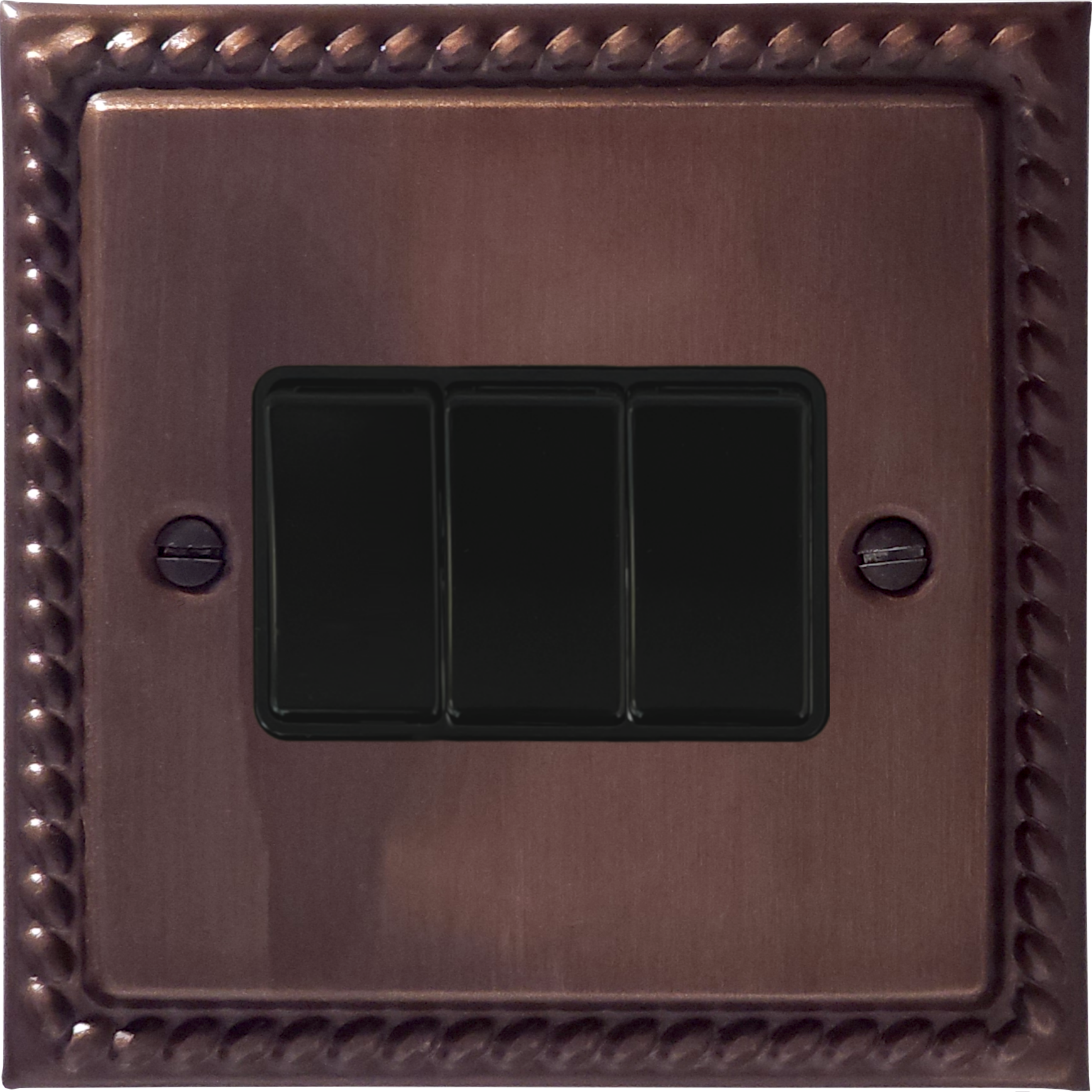 Monarch Tarnished Copper Light Switch (3 Gang/Black Switch) - G+H MTC3B
