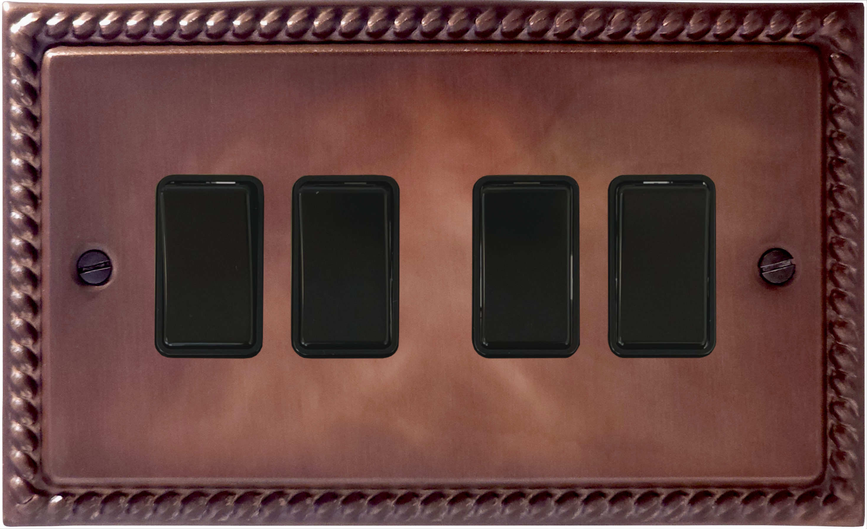 Monarch Tarnished Copper Light Switch (4 Gang/Black Switch) - G+H MTC4B
