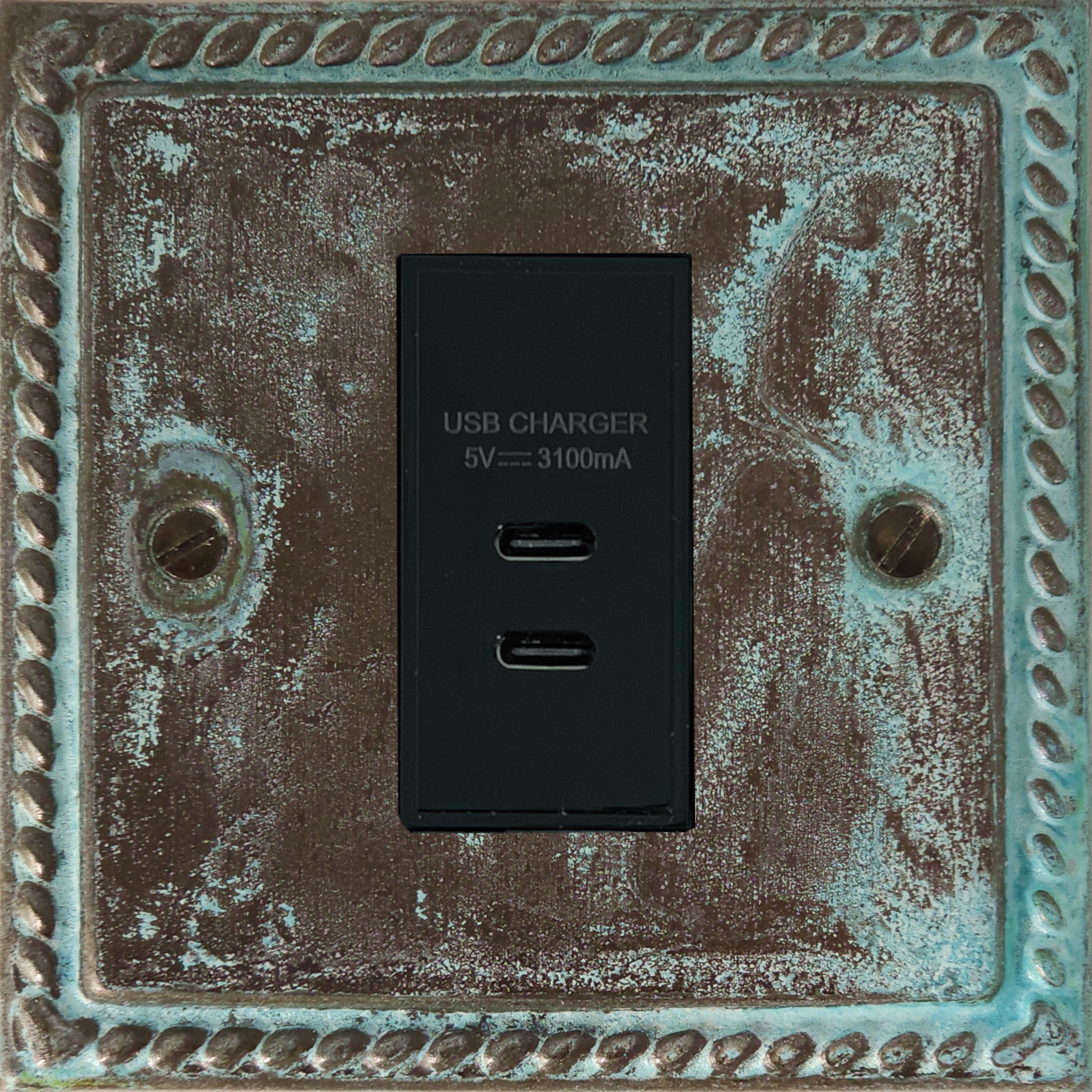 Monarch Verdigris USB Charger (2x USB-C) (1 Gang/Black Insert) - G+H MV42B