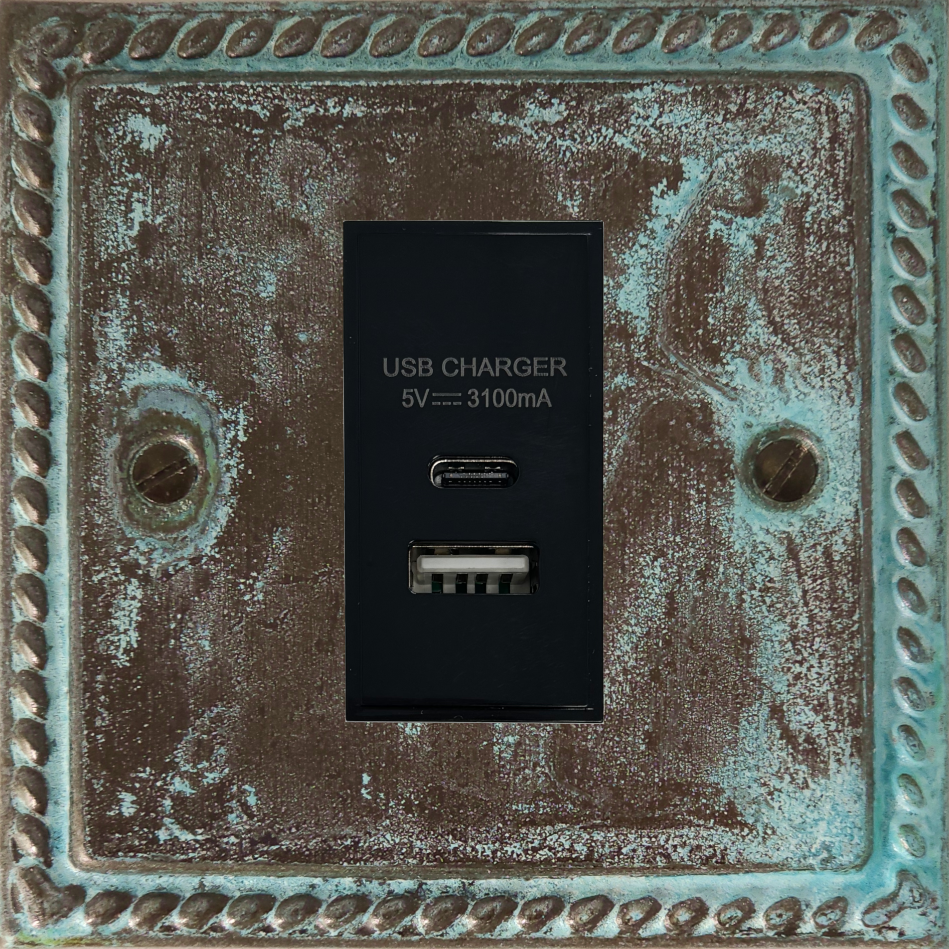 Monarch Verdigris USB Charger (USB-A and USB-C) (1 Gang/Black Insert) - G+H MV41B