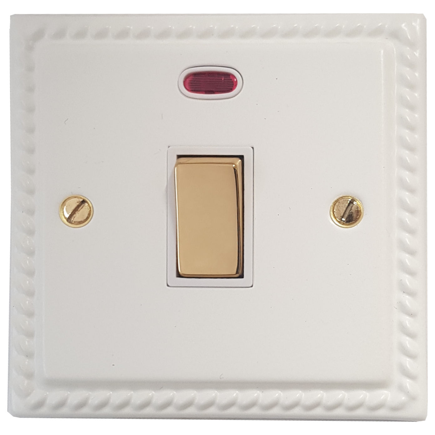 Monarch White 20A DP Switch with Neon (White  insert/Polished Brass Switch) - G+H MW226-PB