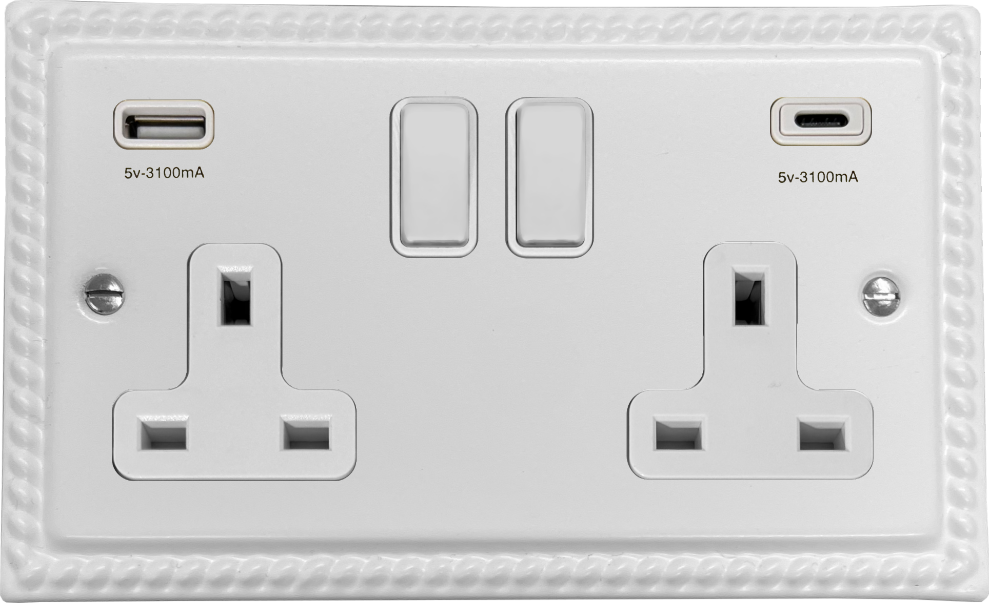 Monarch White Double Socket with USB (USB-A and USB-C/White Switches) - G+H MW911W