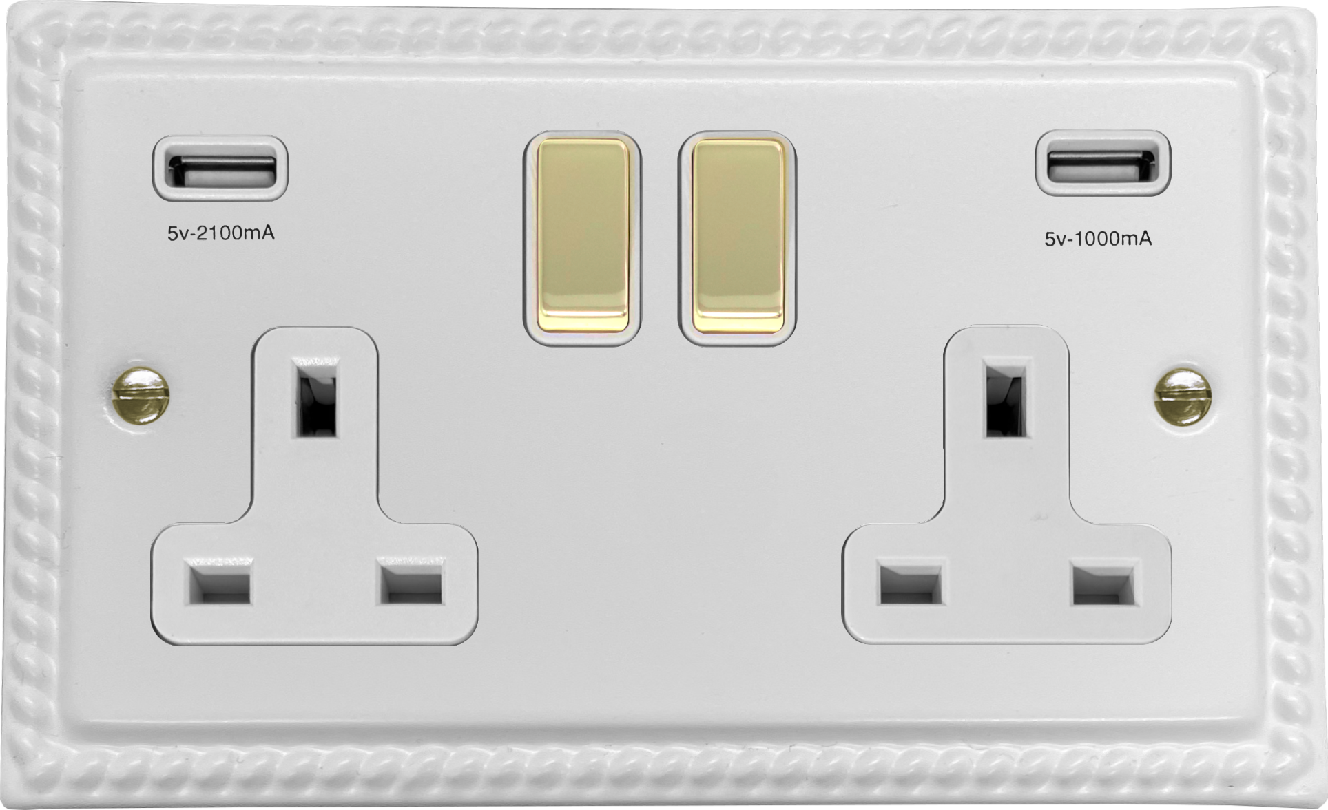 Monarch White Double Socket with USB (White Inserts/Polished Brass Switches)