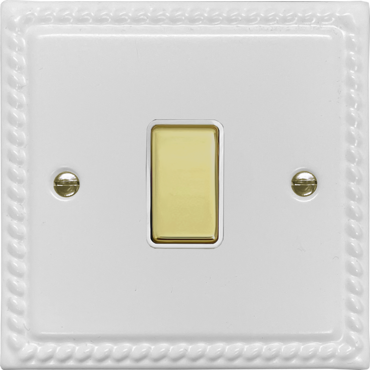 Monarch White Intermediate Light Switch (1 Gang/White insert/Polished Brass Switch)