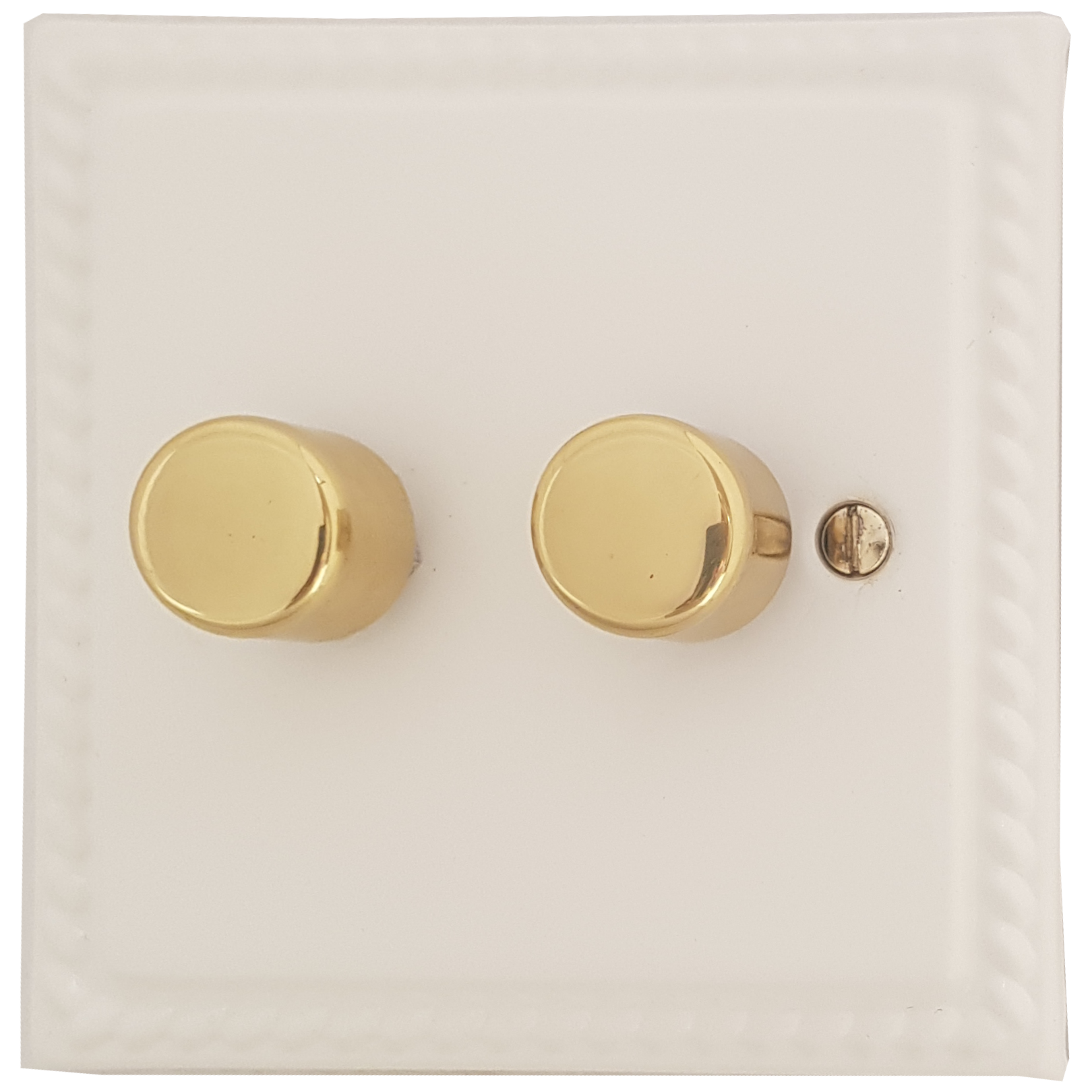 Monarch White LED Dimmer (2 Gang/Brass Caps)
