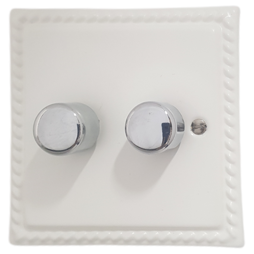 Monarch White LED Dimmer (2 Gang/Chrome Caps)