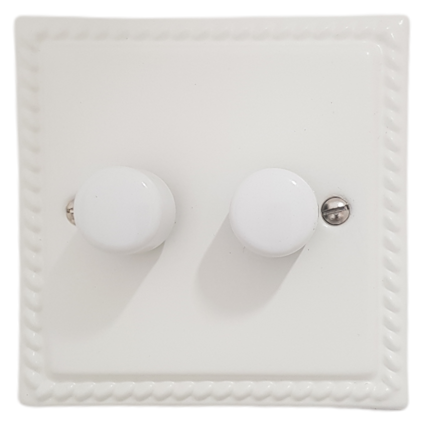 Monarch White LED Dimmer (2 Gang/White Caps)