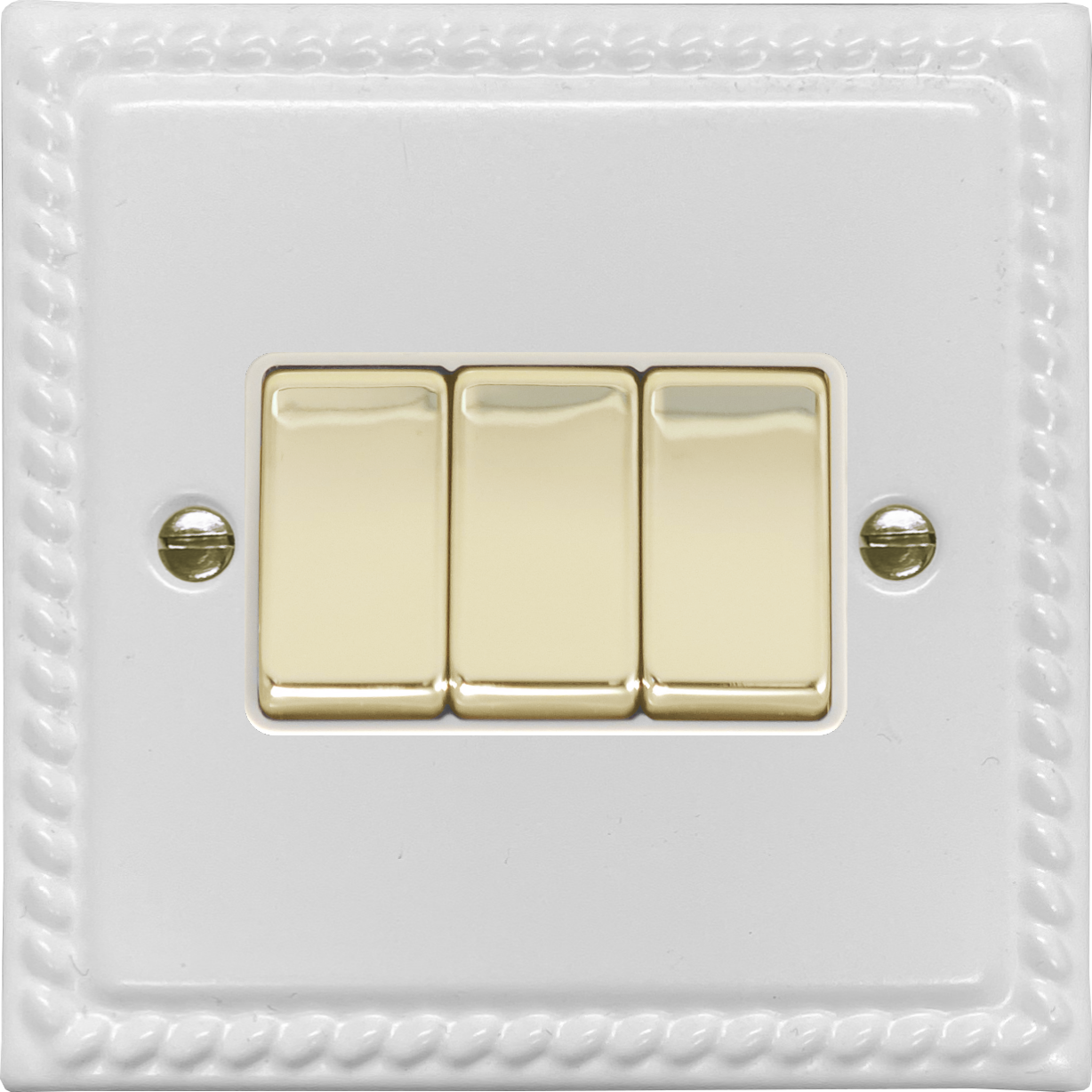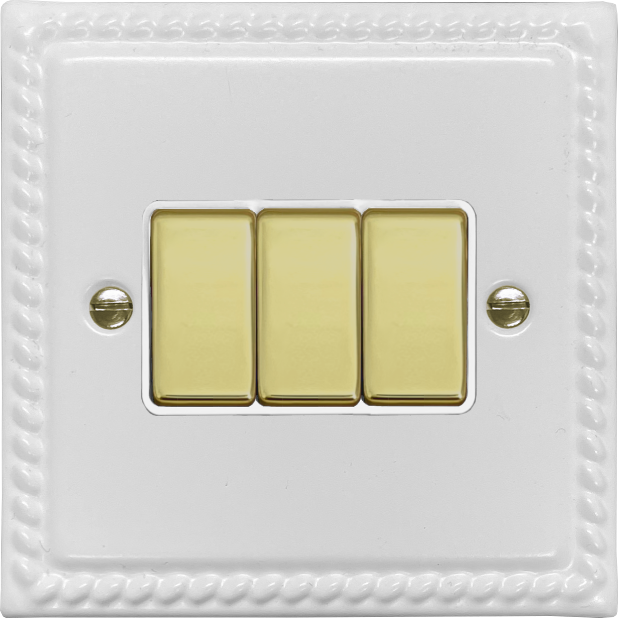 Monarch White Light Switch (3 Gang/White Insert/Polished Brass Switches) - G+H MW203-PB