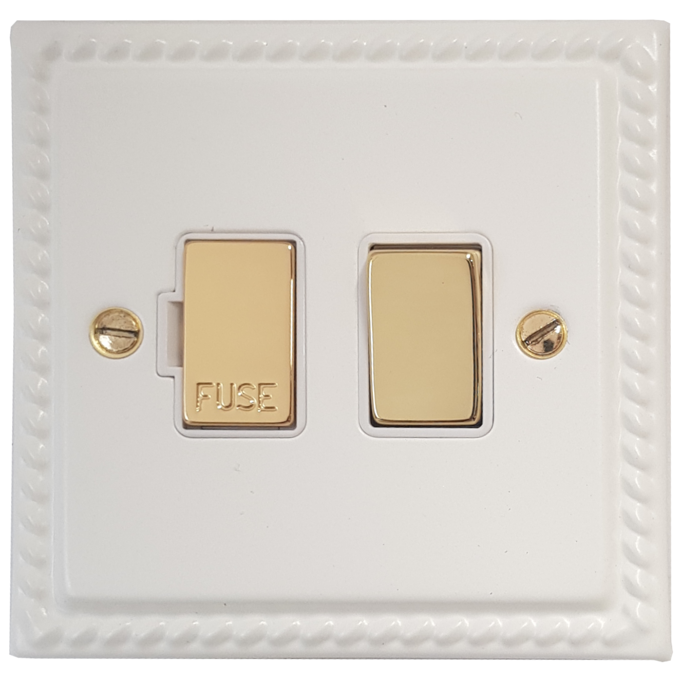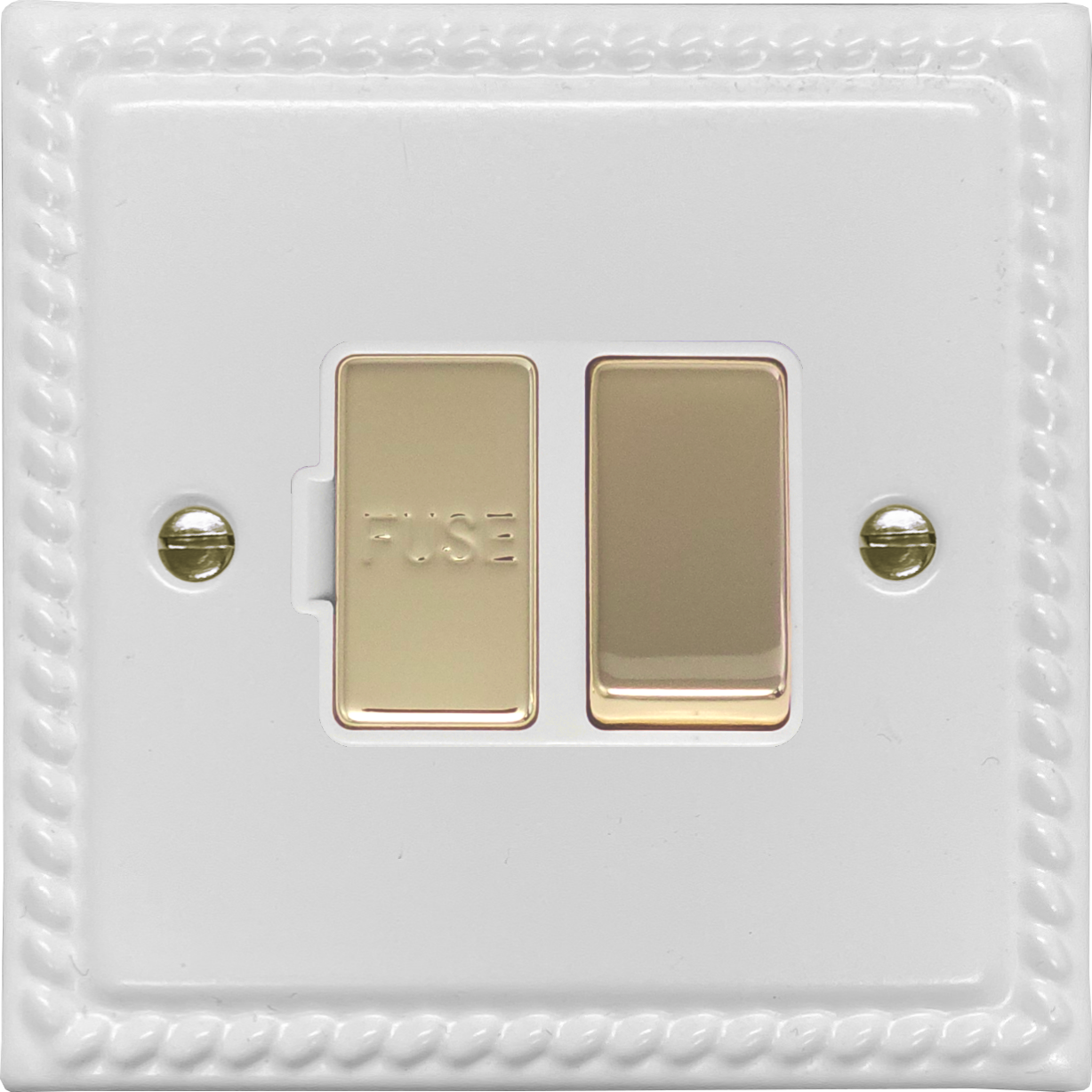 Monarch White Switched Fused Spur (White insert/Polished Brass Switch) - G+H MW257-PB