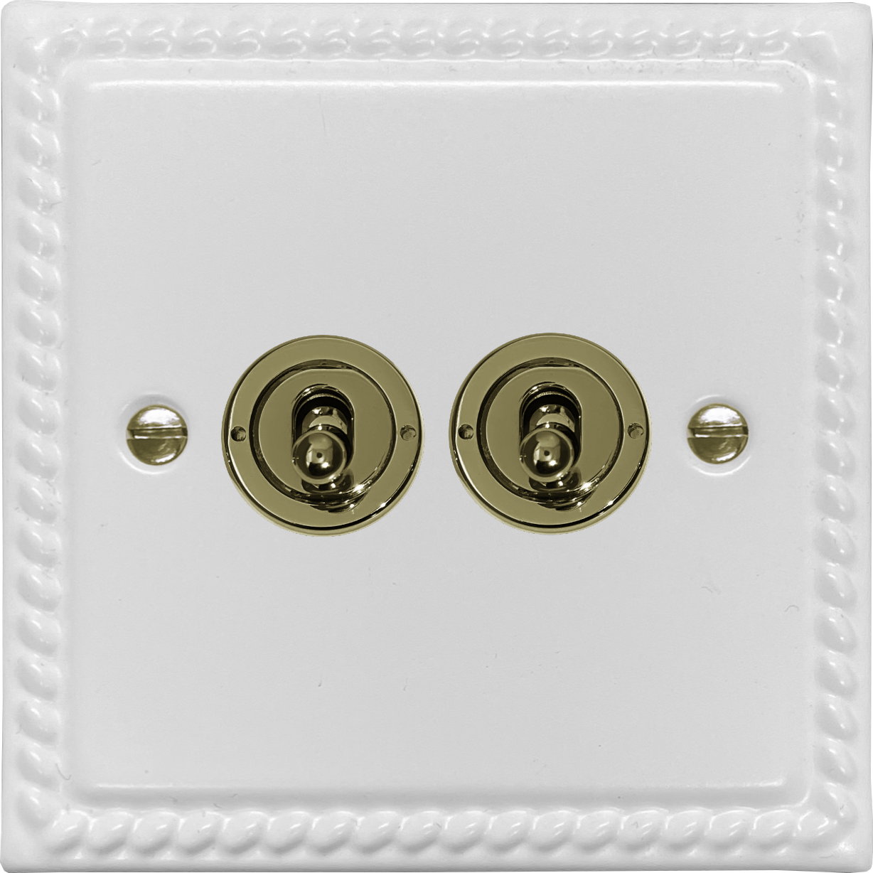 Monarch White Toggle Switch (2 Gang/Polished Brass Switches) - G+H MW382-PB