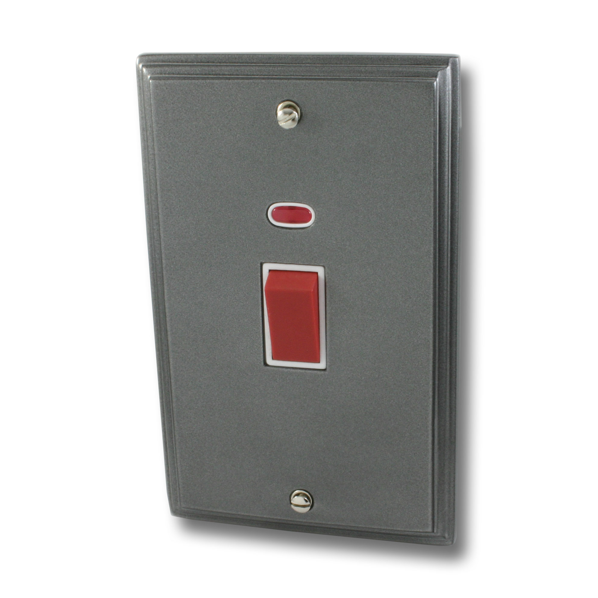 Pewter 45A DP Switch (White Insert/Vertical Plate) - G+H VP28W