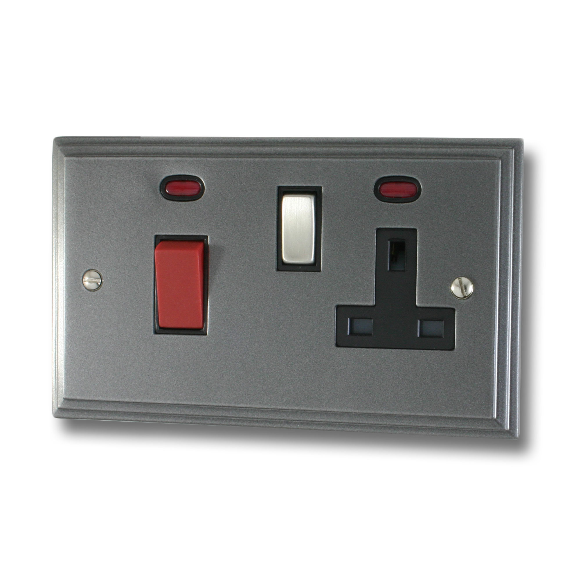 Pewter Cooker Switch with Socket (Black Insert/Satin Chrome Switch) - G+H VP329