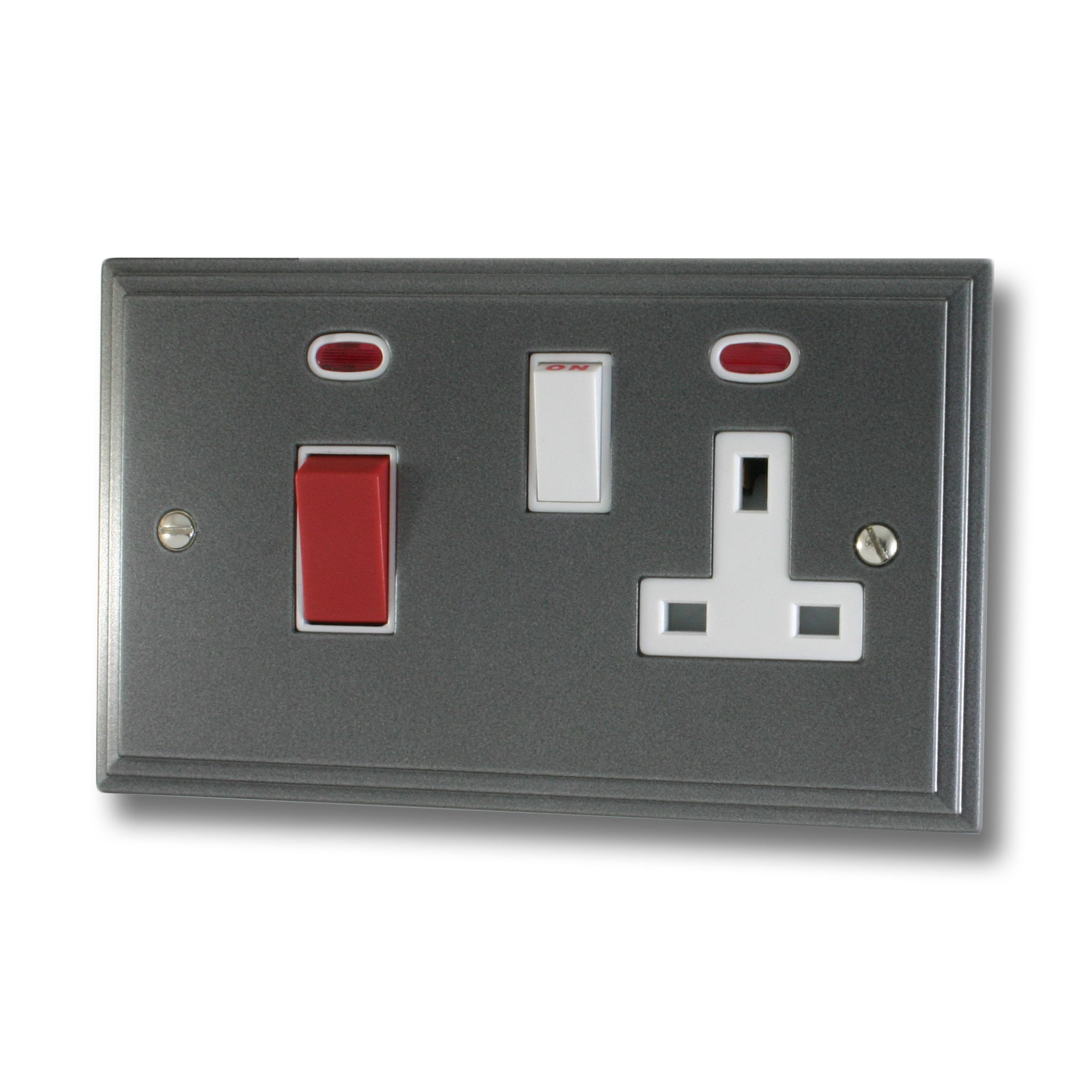 Pewter Cooker Switch with Socket (White Switch) - G+H VP29W