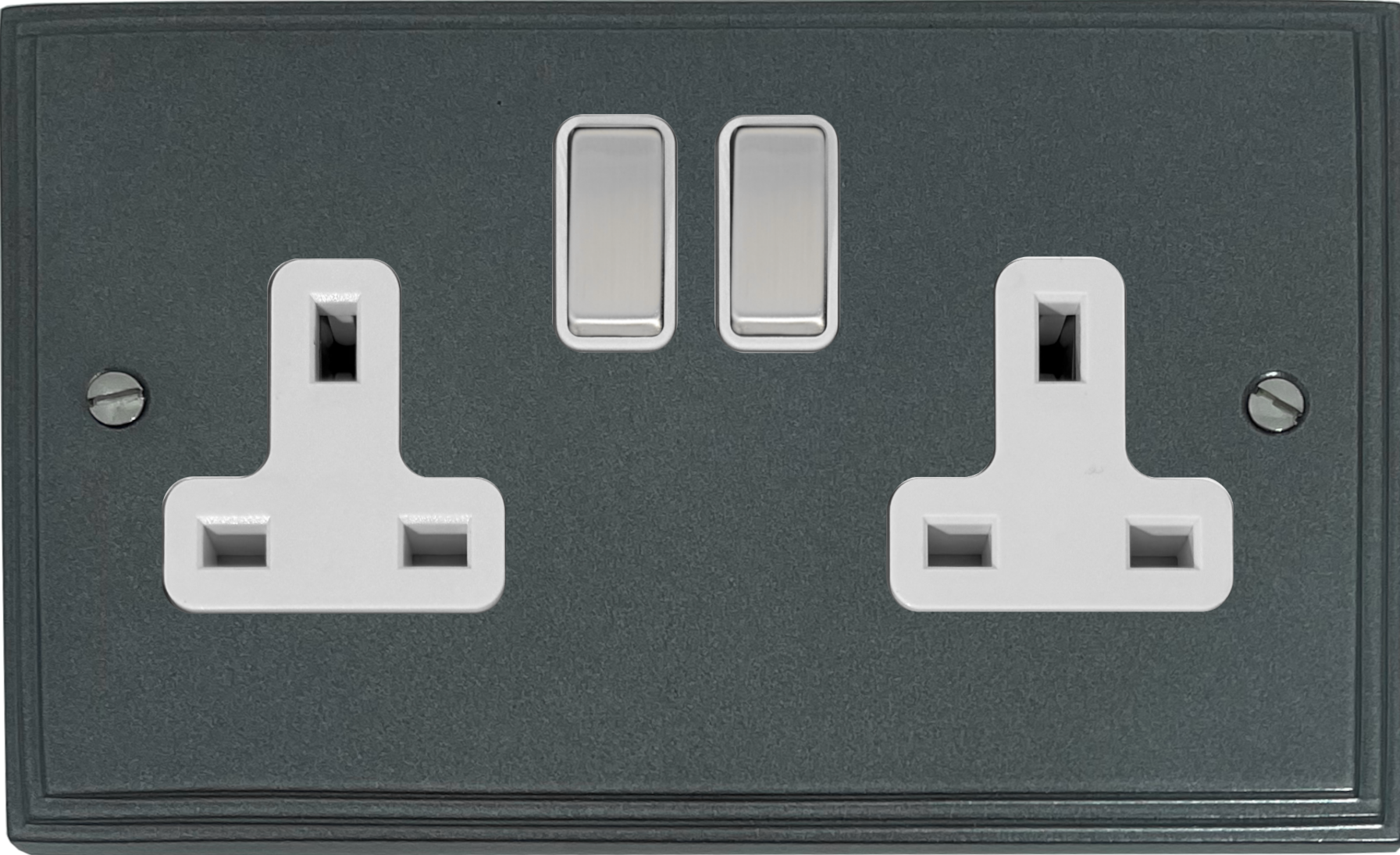 Pewter Double Socket (White Insert/Satin Chrome Switch) - G+H VP210