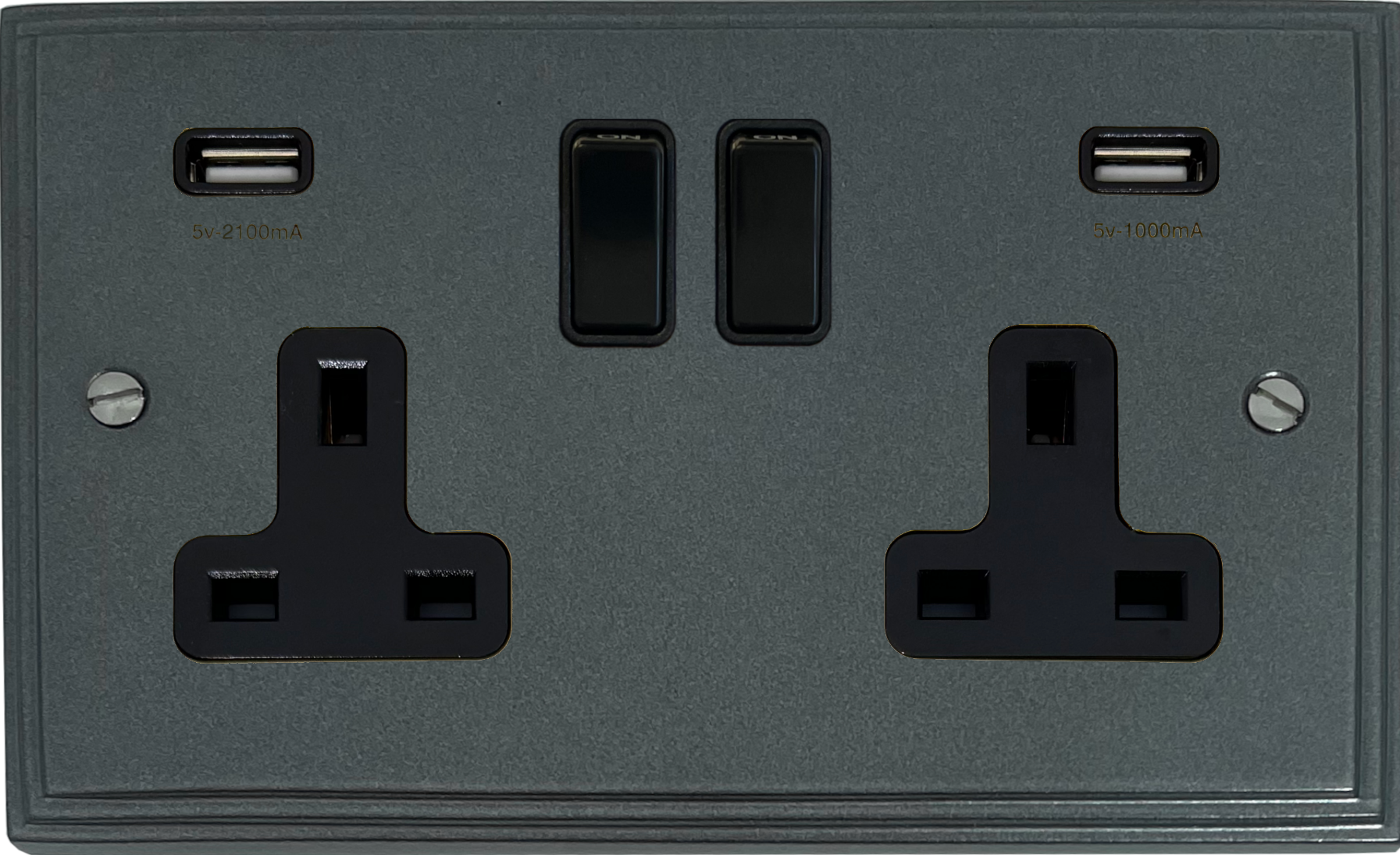 Pewter Double Socket with USB (Black Insert/Black Switch) - G+H VP910B